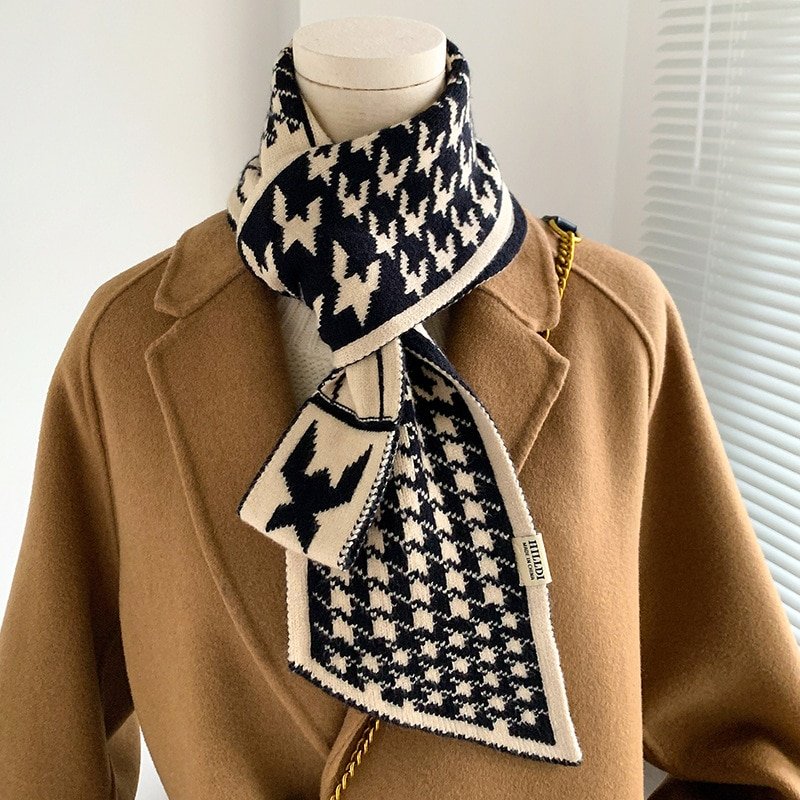 New Houndstooth Plaid Luxury Brand Knitted Scarf Scarf Women Winter Scarf Long Skinny Small Scarf Female Neckerchief Scarf