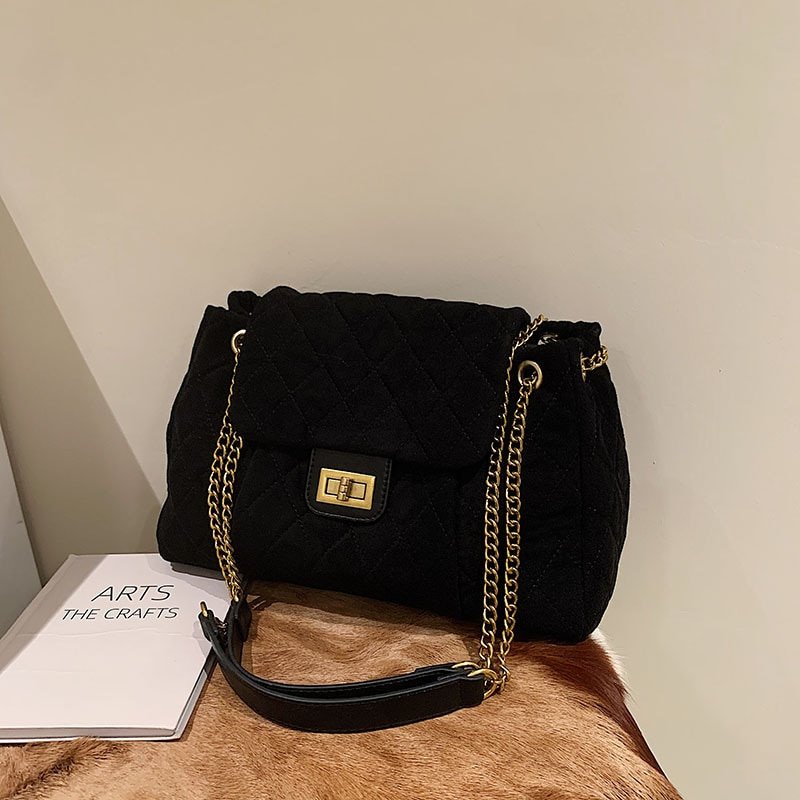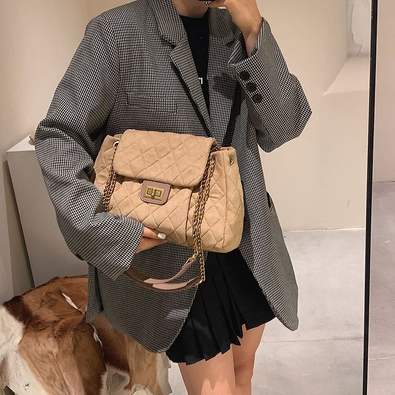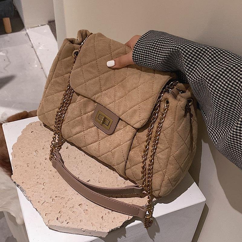 Vintage Suede Large Quilted Chain Crossbody Shoulder Bags for Women Luxury Brand Designer Ladies Handbags Winter