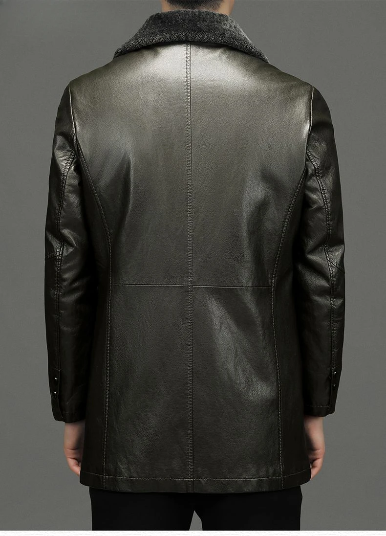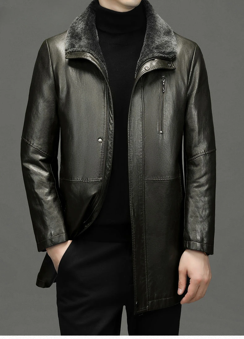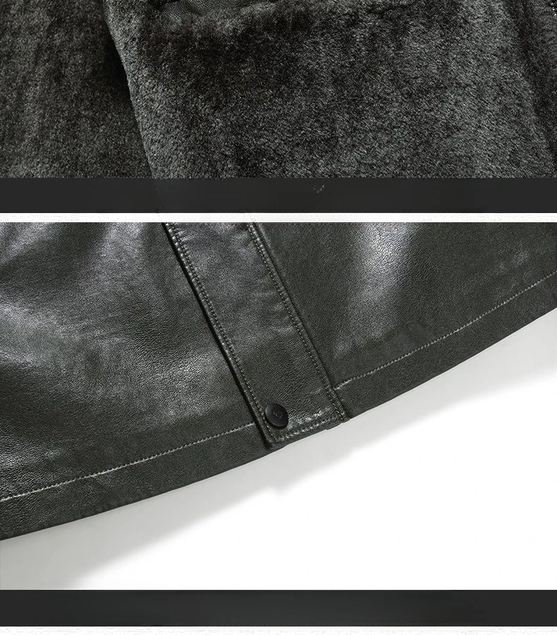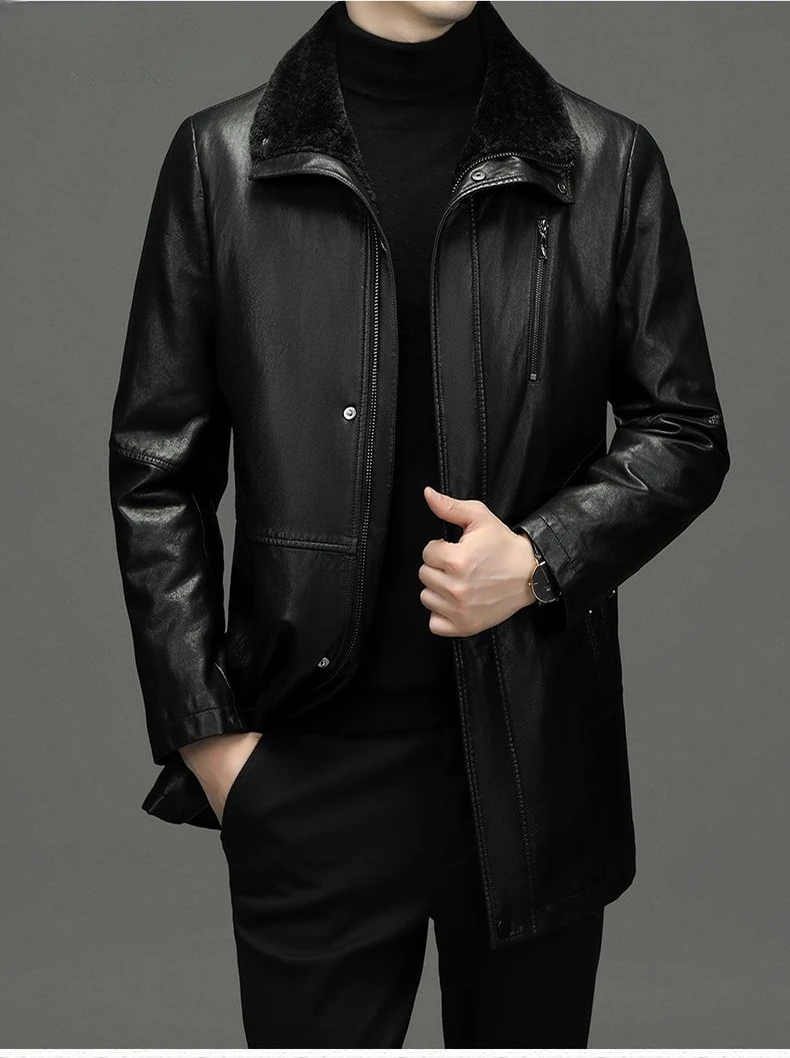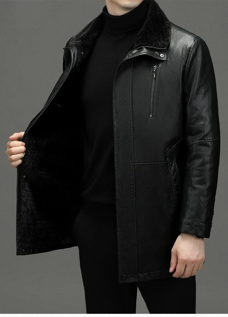 Men Fashion Casual Fur Integrated Leather Coat Winter Men Mid-Length Thickened Wool Liner Warm Sheep Leather Jacket