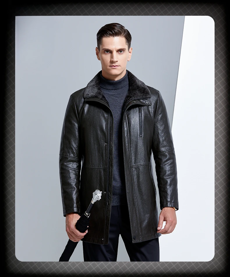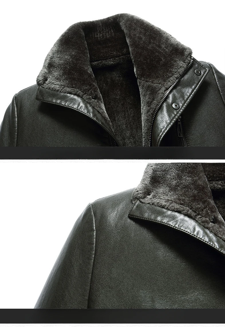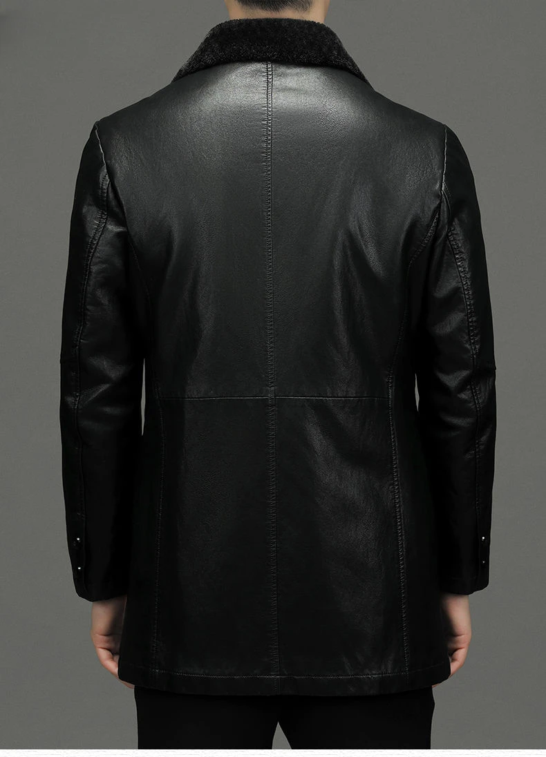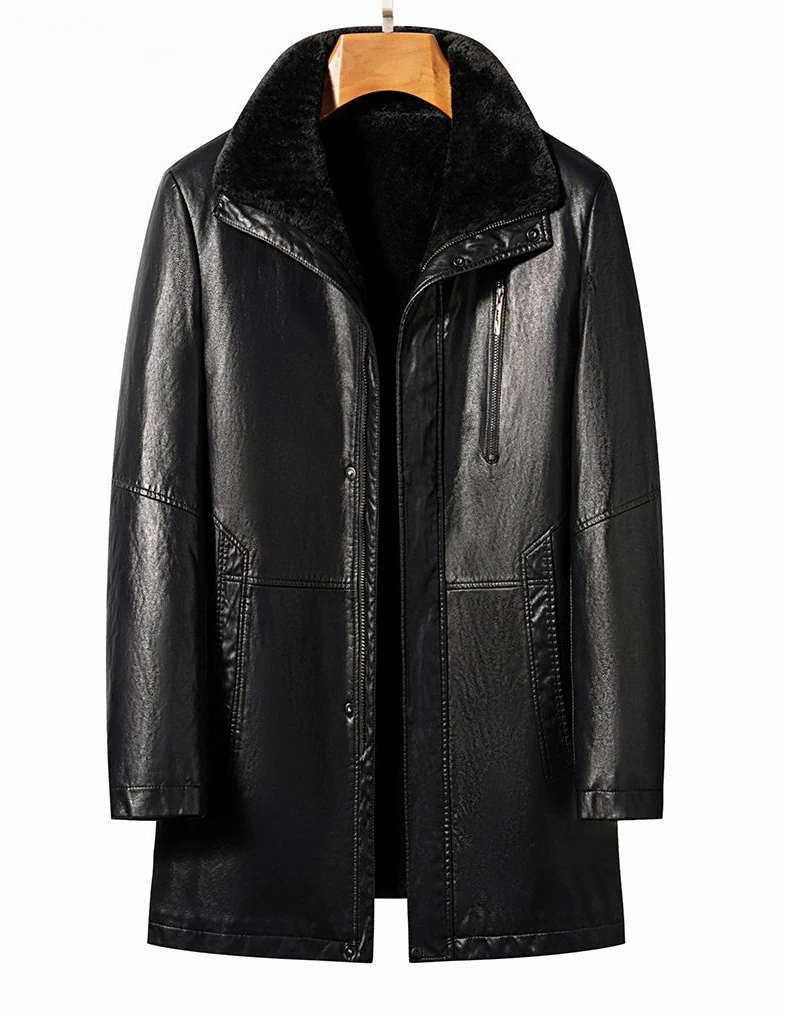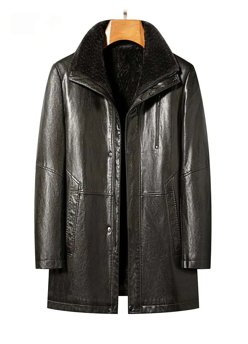 Men Fashion Casual Fur Integrated Leather Coat Winter Men Mid-Length Thickened Wool Liner Warm Sheep Leather Jacket