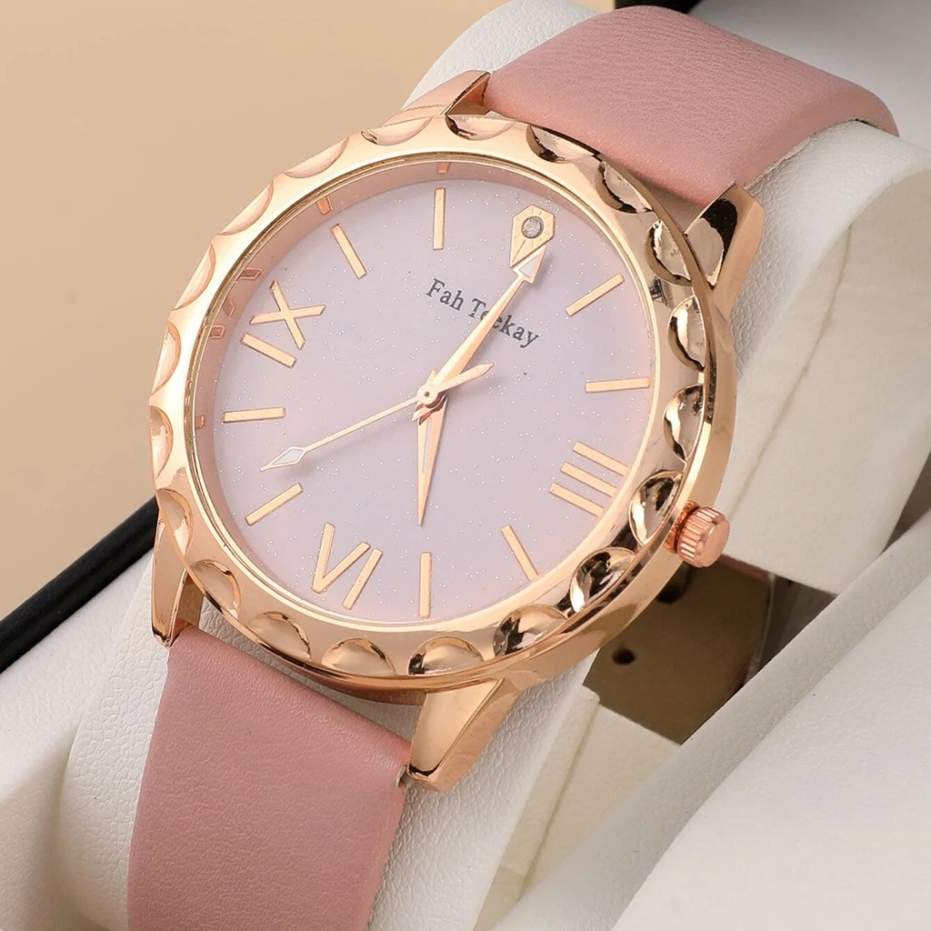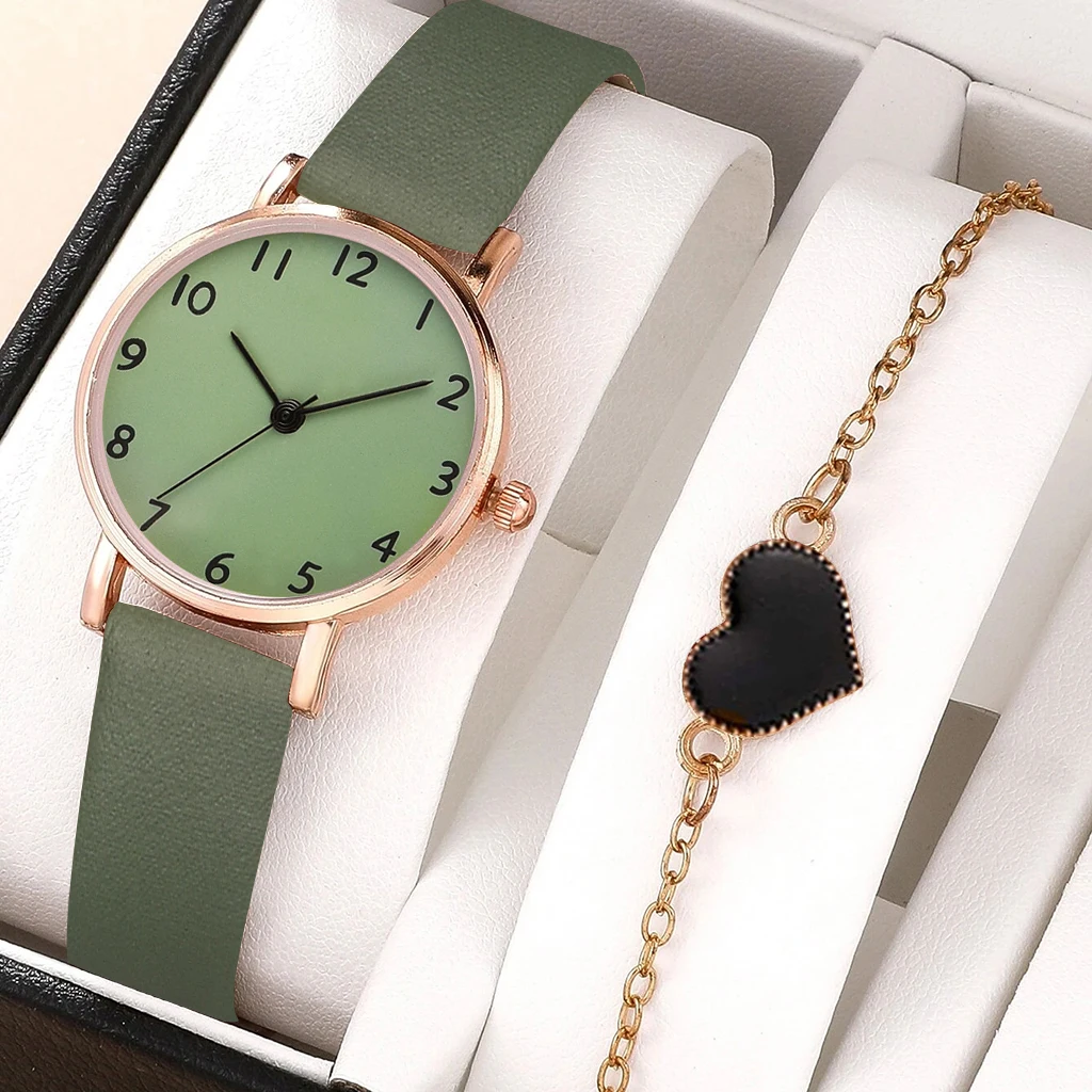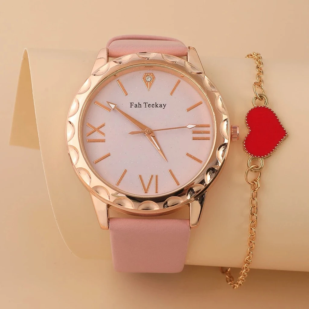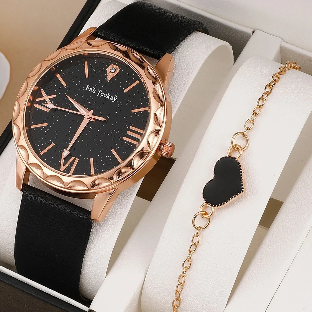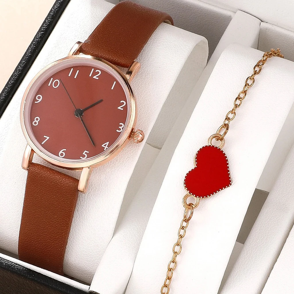 2PC Set New Fashion Ladies Watches Watches For Women Rose Gold Leather Female Clock Wristwatch Luxury Women Watches Simple