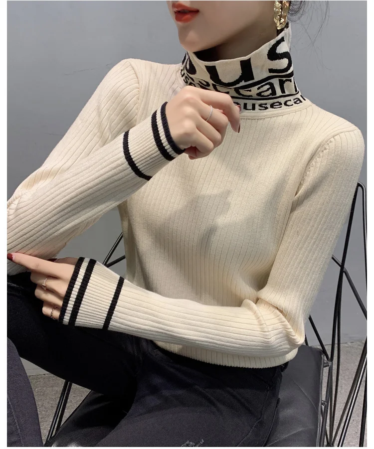 Basic Sweater Women Pullover Long Sleeve Harajuku Tight Sweater Ladies Slim Sweater Turtleneck Knitwear Sweater Spring