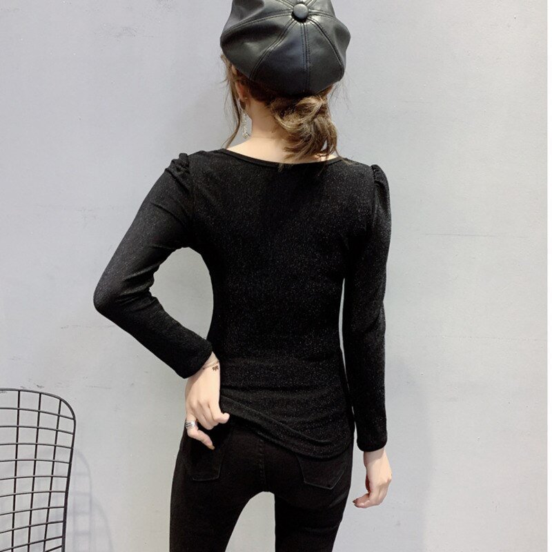 Be the first to review “Gold Red Black Basic Shiny Mesh T Shirt Women V Neck Spliced Lace Long Sleeve T Shirt Female Woman T Shirt Spring”