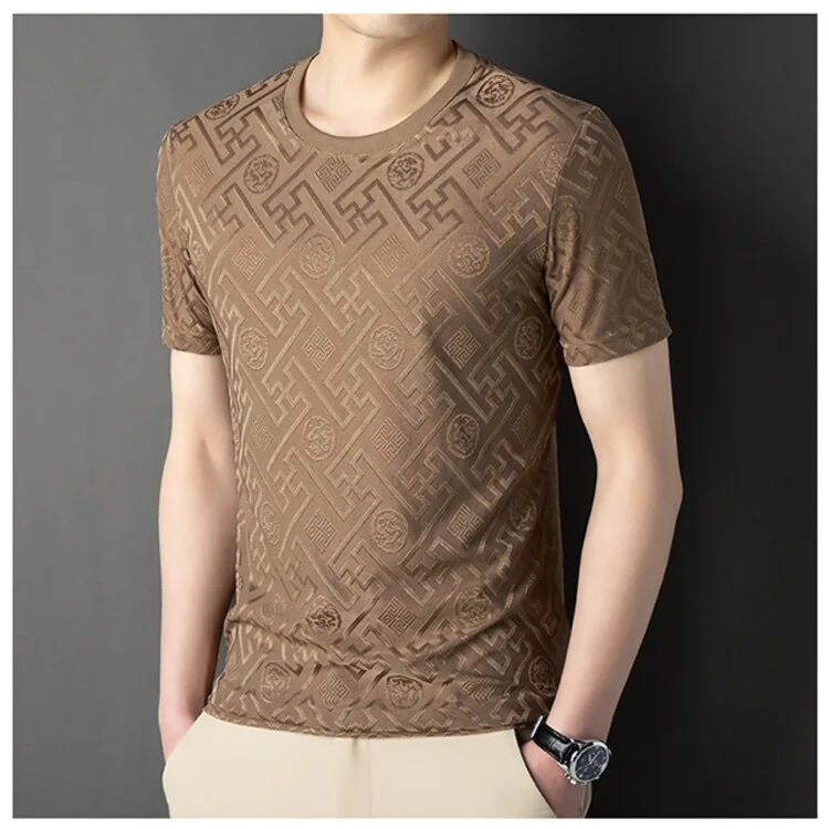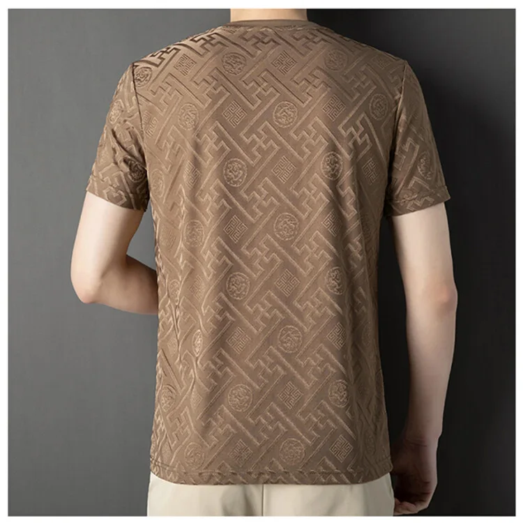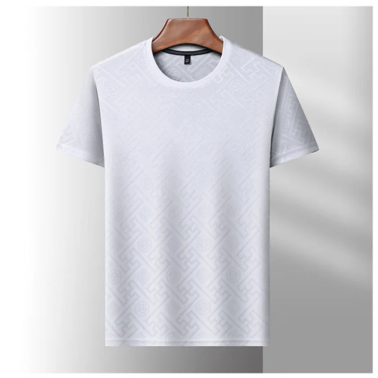 Advanced Ice Silk Breathable Short Sleeve Men’s Round Neck Top Summer Luxury Brand Jacquard Loose Casual Solid Color T-shirt
