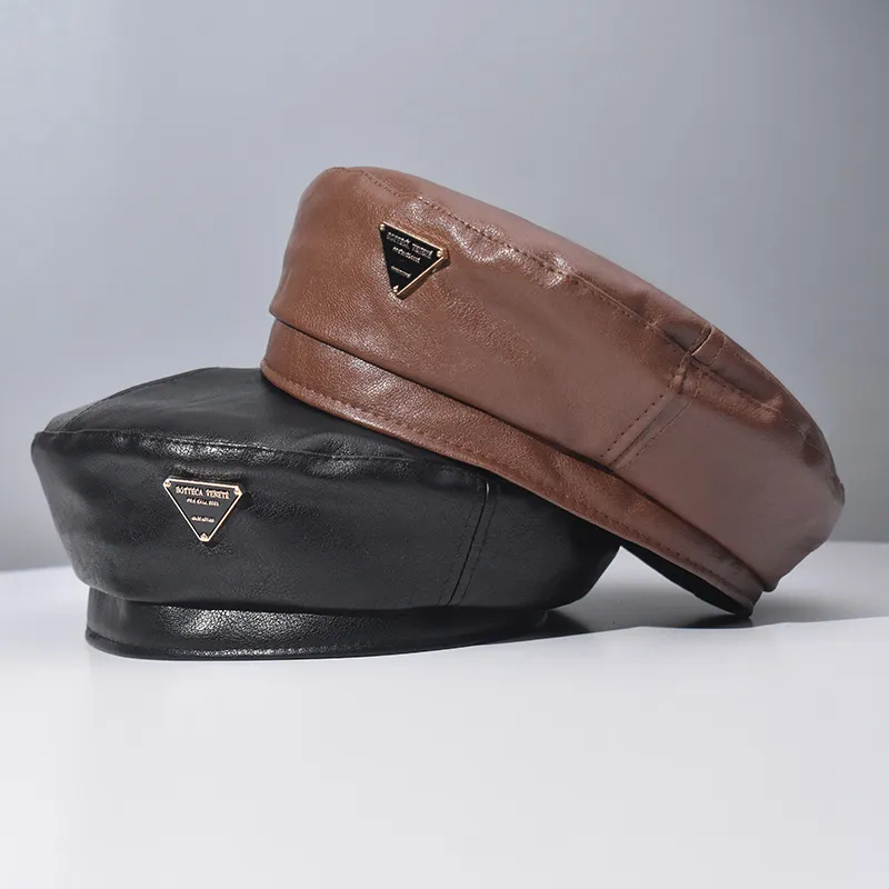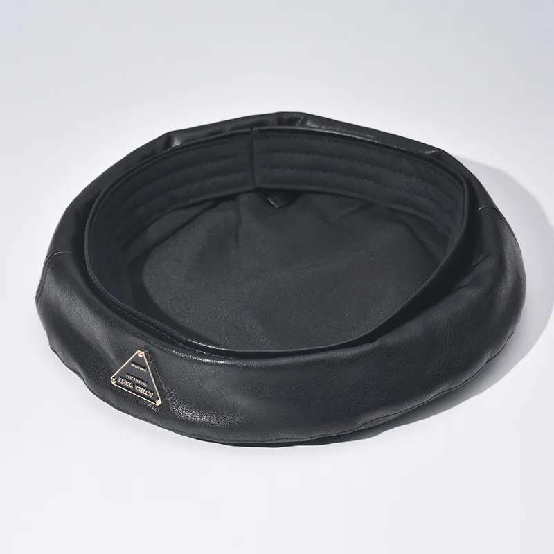 Autumn And Winter New Fashion Literary Beret Female PU Leather Spring And Autumn Vintage Versatile Artist Octagonal Hat Flat Top