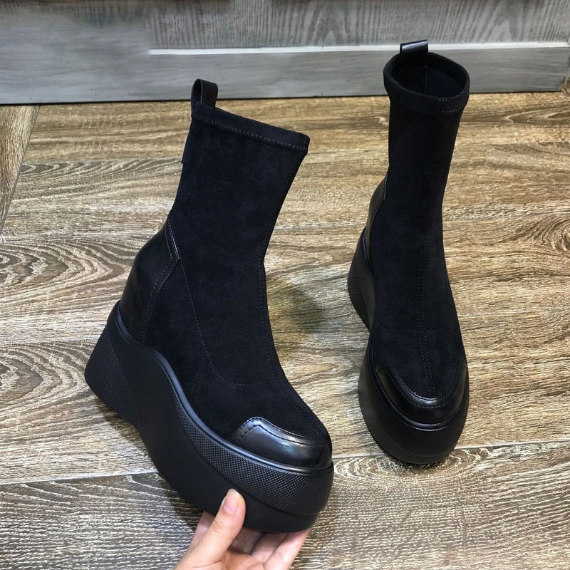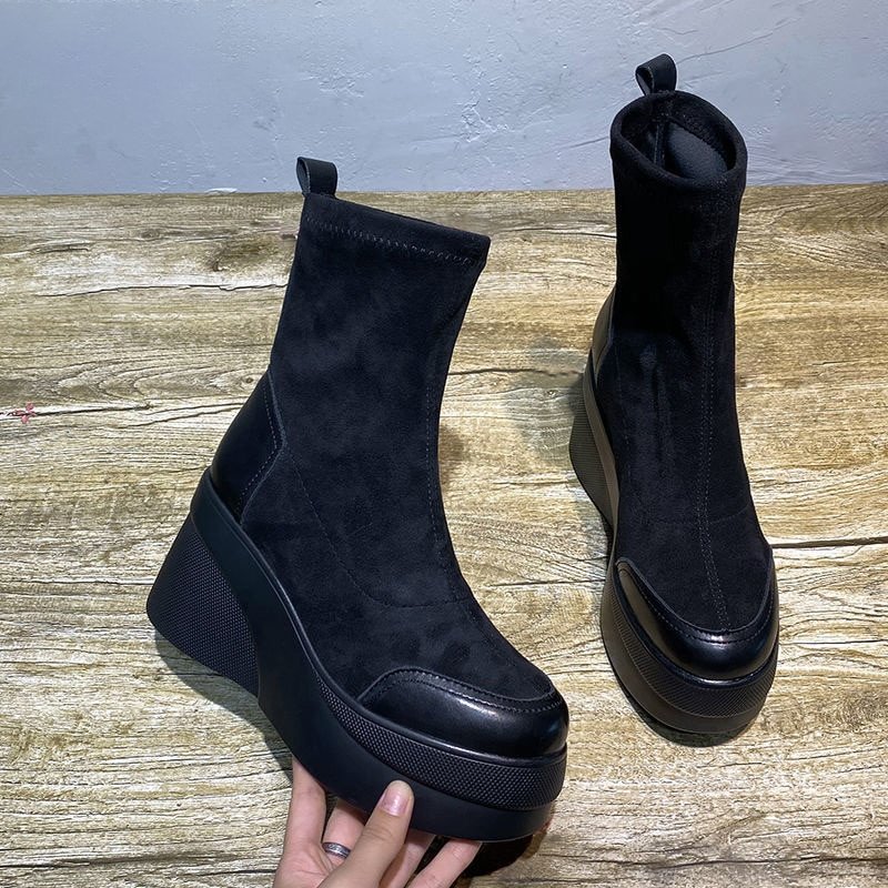 Autumn Spring Women Shoes Woman Platform Boots Fashion Round Toe Ankle Boots Winter Elastic Black Wedge Comfortable Botas