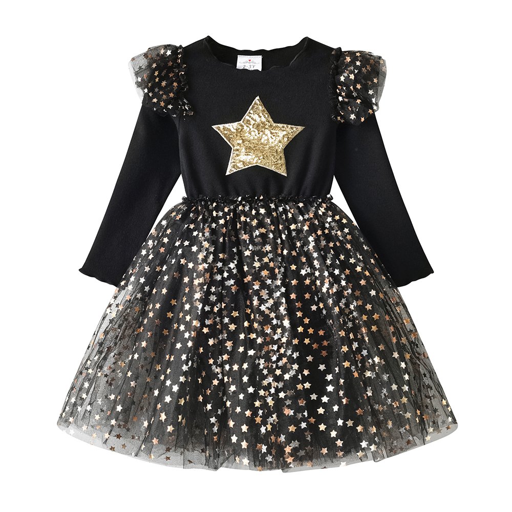 Baby Girl Dress Applique Vestidos Slik Cotton Kids Party Dresses for Girls Clothes Star Glitter Sequin Casual Dress
