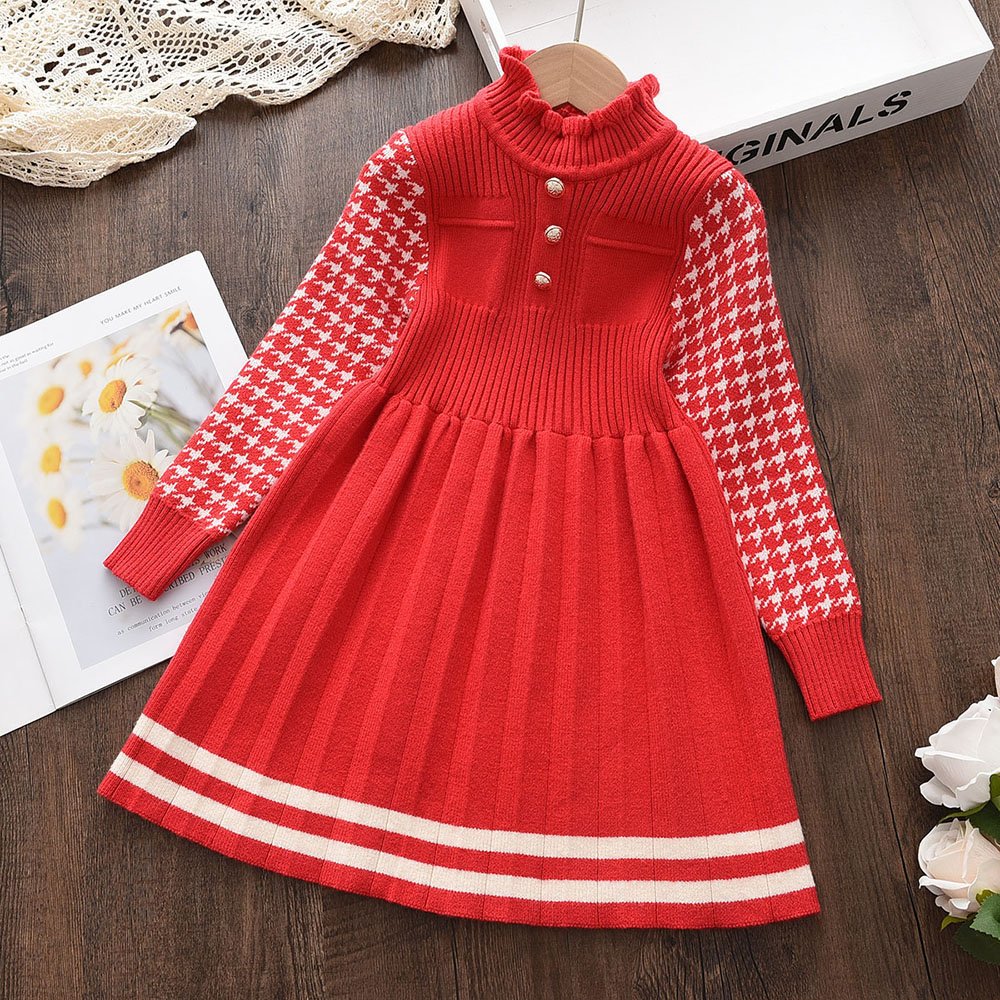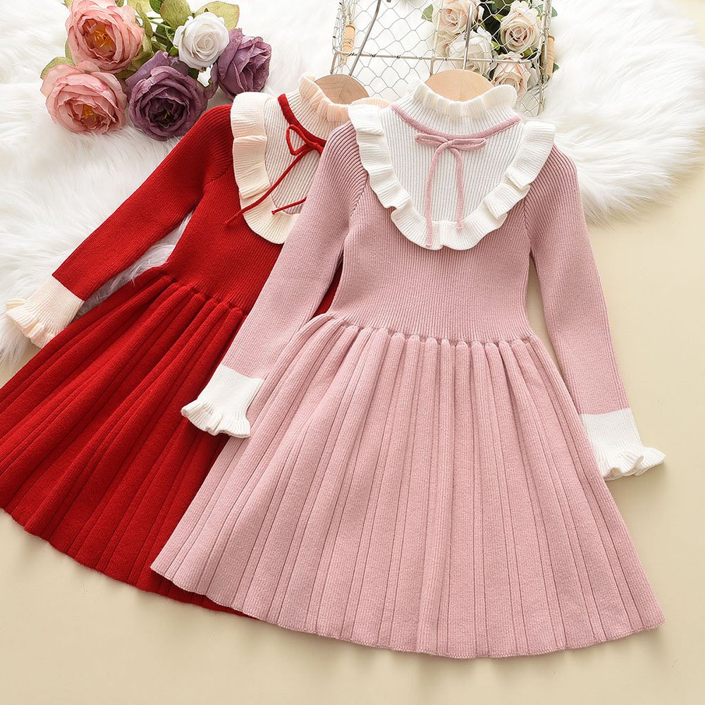 Autumn Winter Girls Dress Girls 4-8Y Kids Princess Party Sweater Knitted Dresses Christmas Costume Baby Girl Clothes