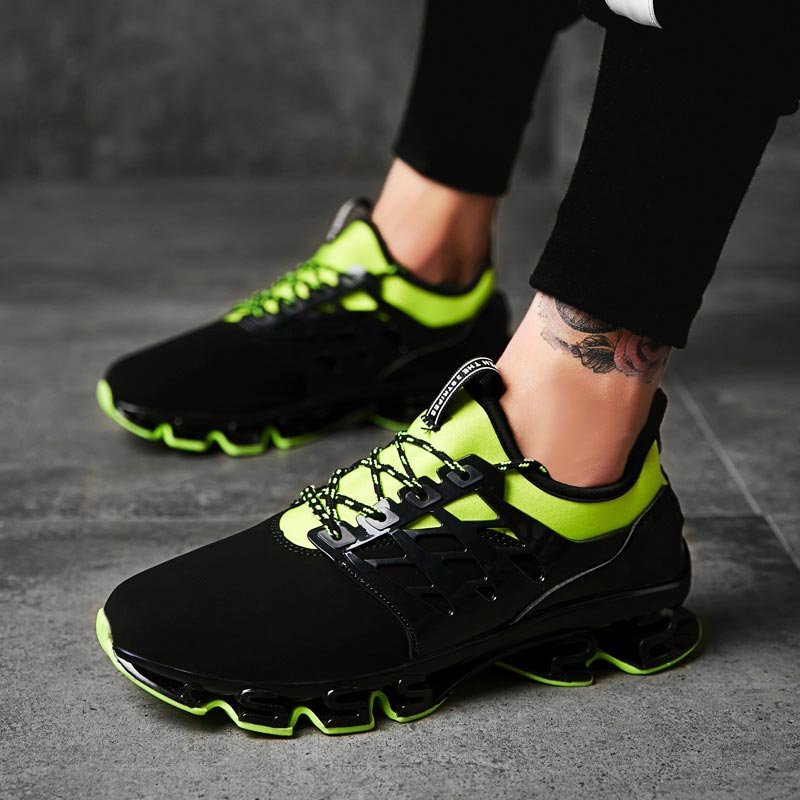 Big Size Air Cushion Breathable Men’s Sneakers Running Trainers Man Sport Shoes Mens Sports Shoes Black Green Flat
