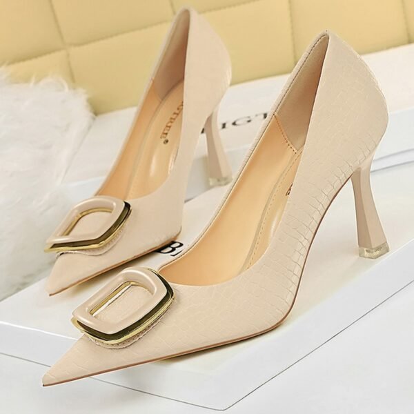 Be the first to review “Shoes Designer New Women Pumps Square Buckle Stone Pattern Kitten Heels Shoes High Heels Ladies Shoes Large Size 43”