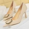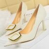 Shoes Designer New Women Pumps Square Buckle Stone Pattern Kitten Heels Shoes High Heels Ladies Shoes Large Size 43