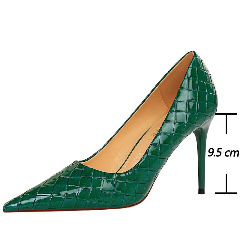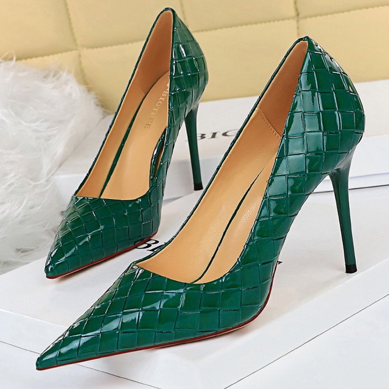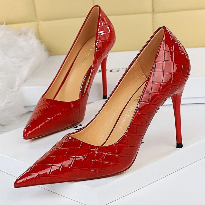 Shoes Patent Leather Woman Pumps Serpentine High Heel Sexy Party Shoes Women Heels Pointed Toe Kitten Heels Plus Size 43