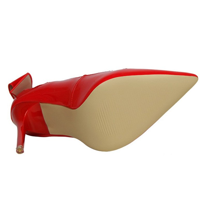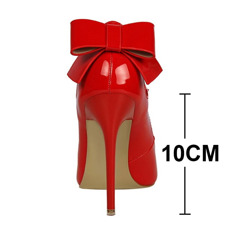 Shoes Patent Leather Women Heels Pointed Toe Woman Pumps High Heels Hot Bow-Knot Pumps Women Stiletto Ladies