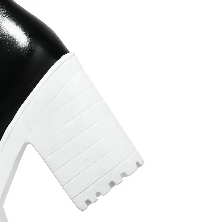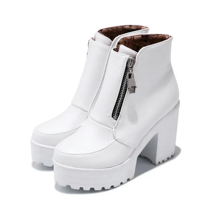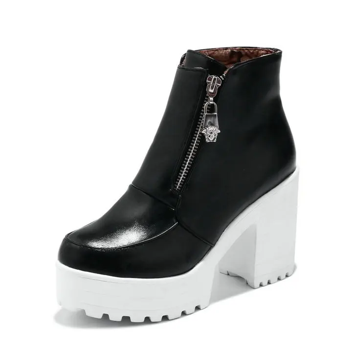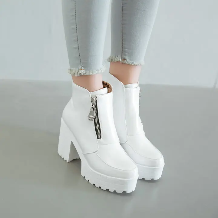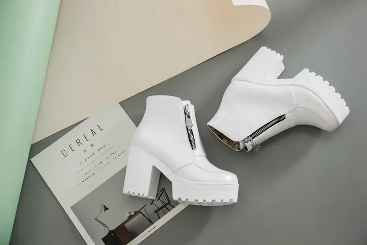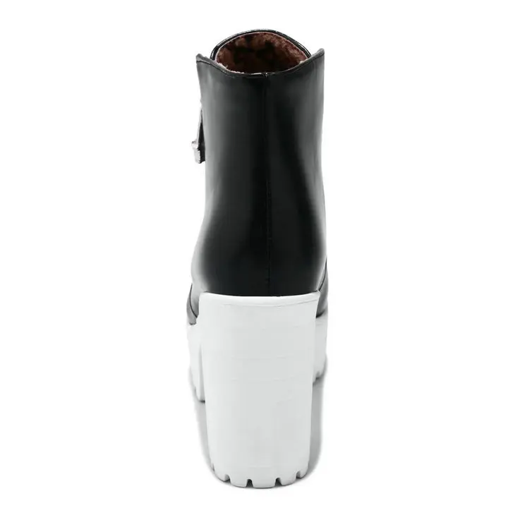 Black White Platform Ankle Boots for Women High Heels Boots Ladies Zip Autumn Winter Booties Woman Boots Shoes