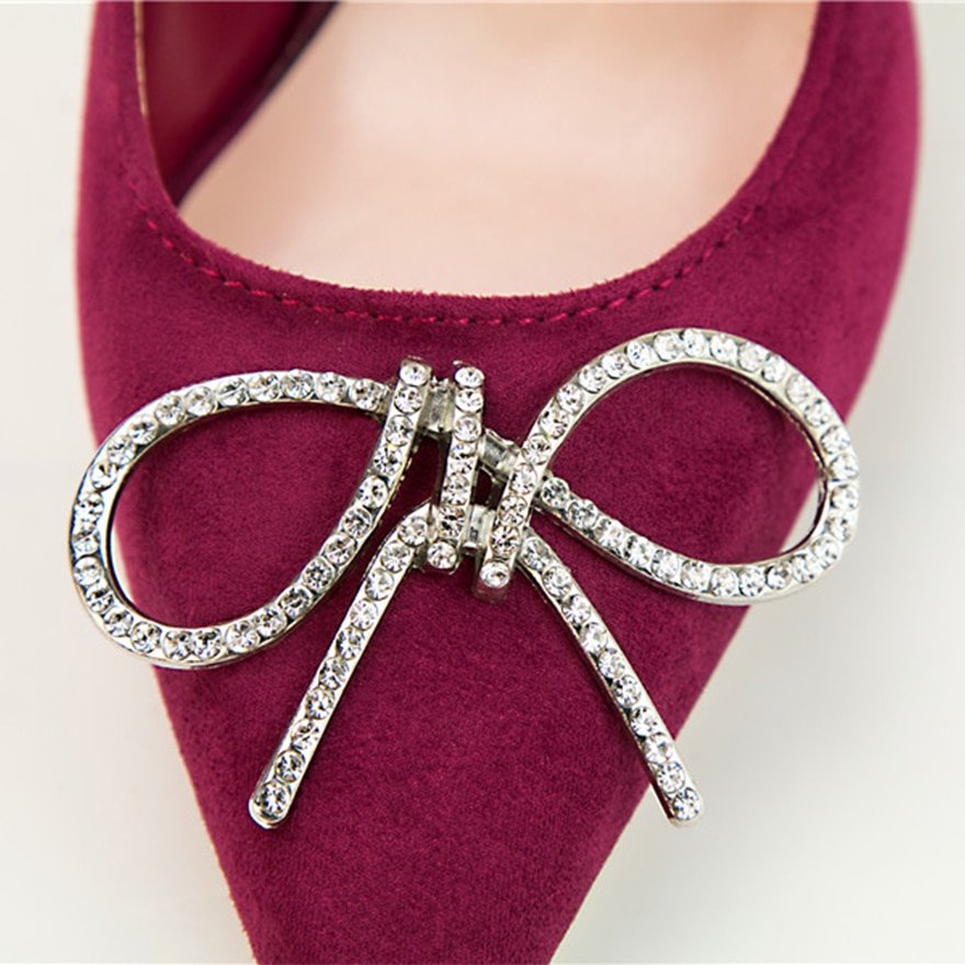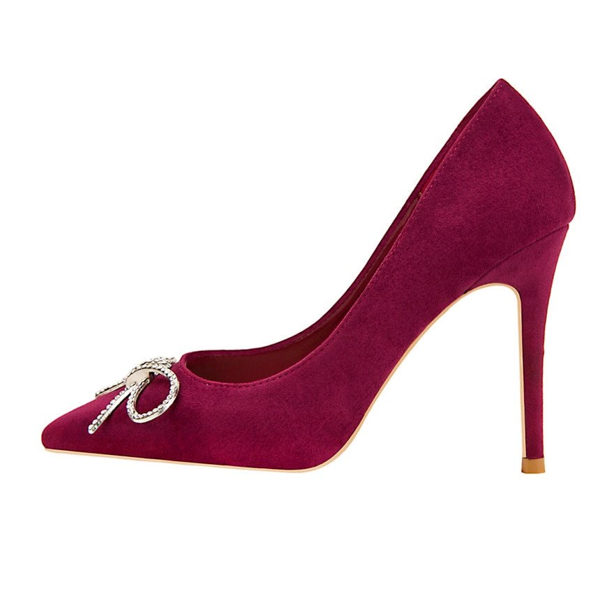 Bling Crystal Bowknot Women Shoes New Autumn Pointed Toe Fashion Women Pumps Shallow Flock High Heel Office Shoes Black Wine Red