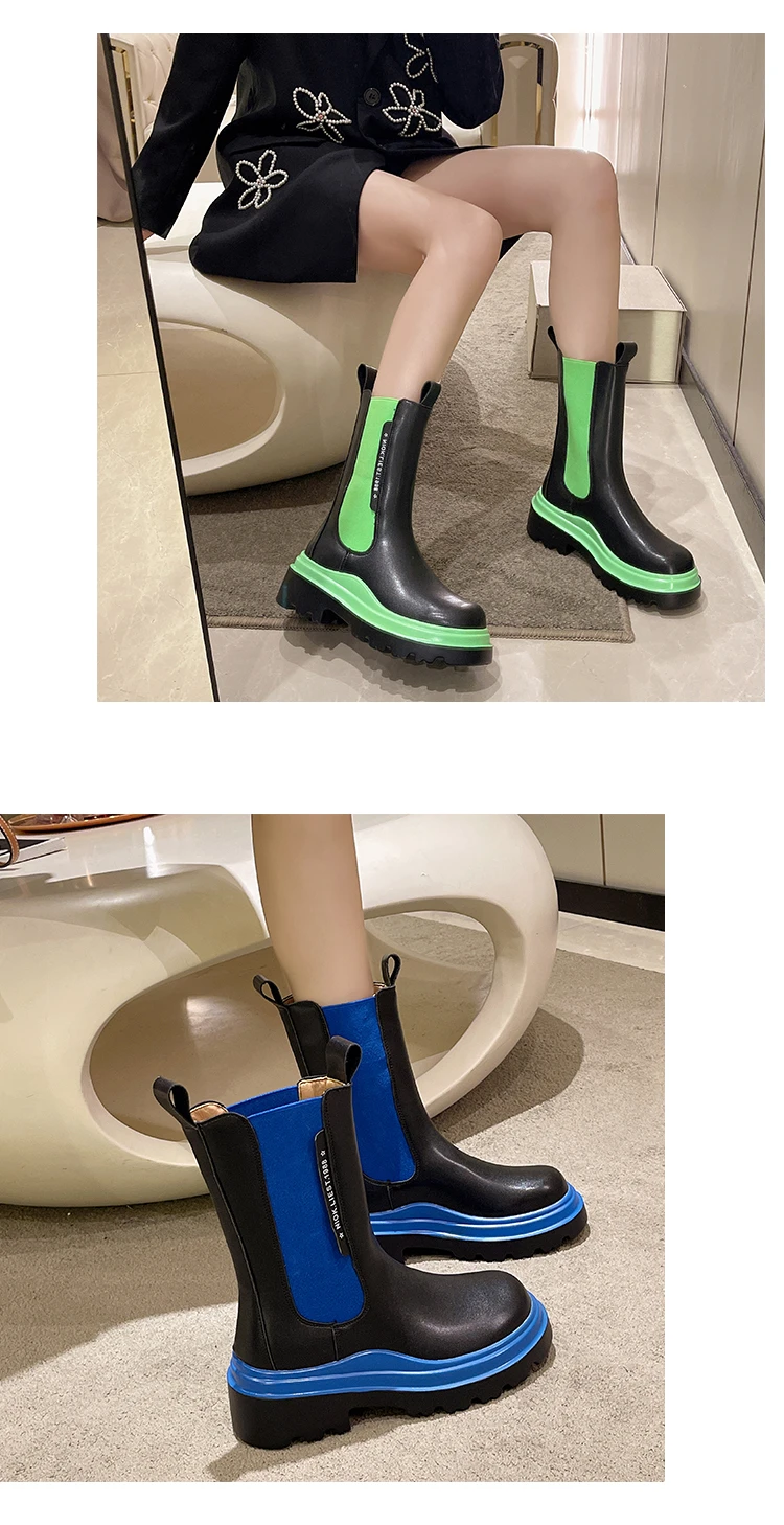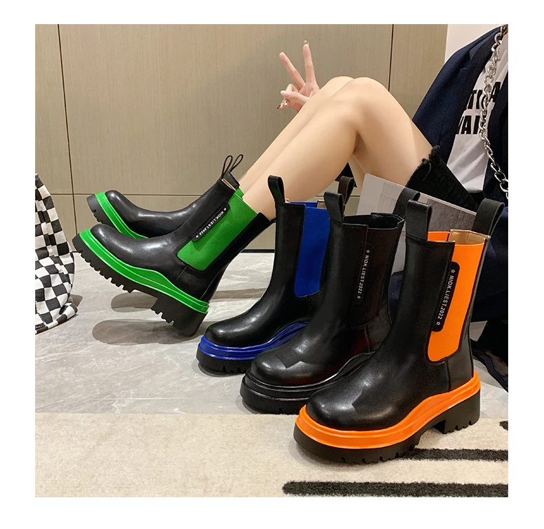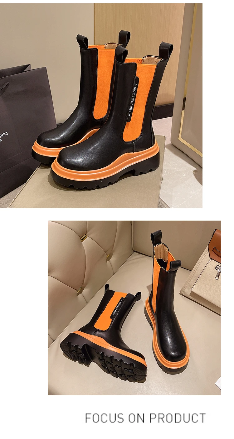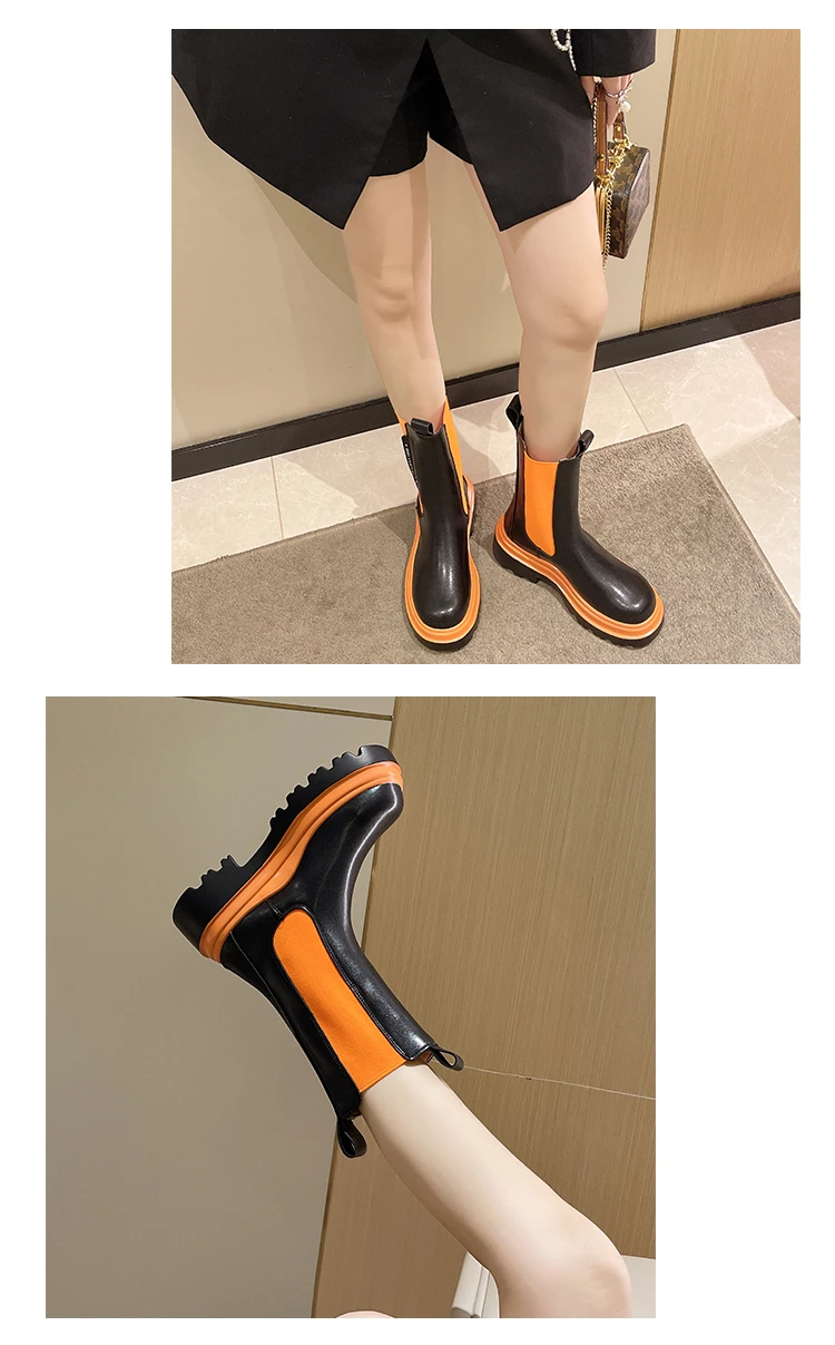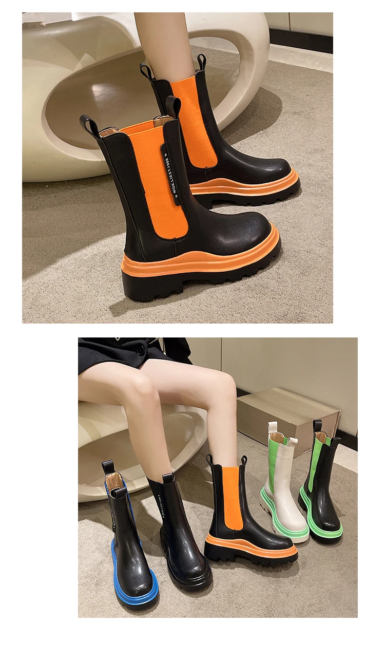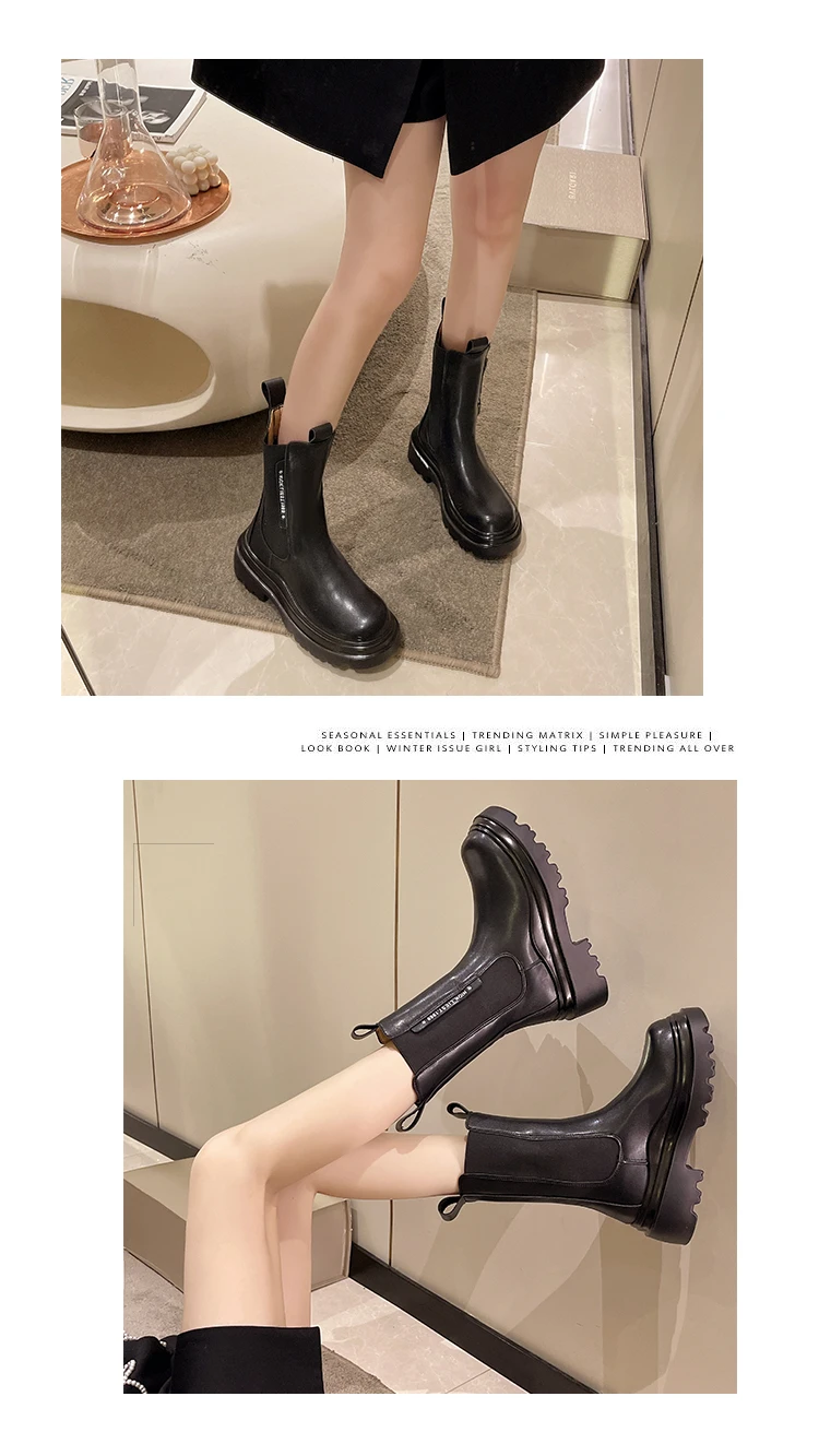 Boots for Women Lady Autumn Platform Boots Fashion Shoes Chelsea Boot Female Platform Brand Designer Slip Short Boots