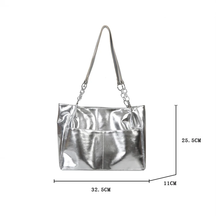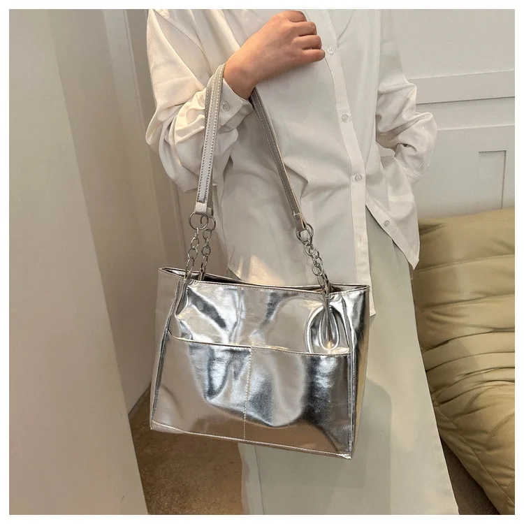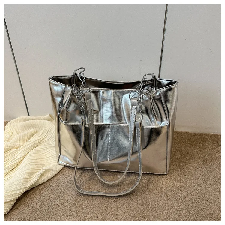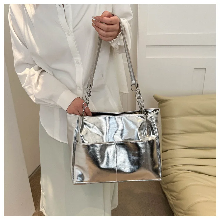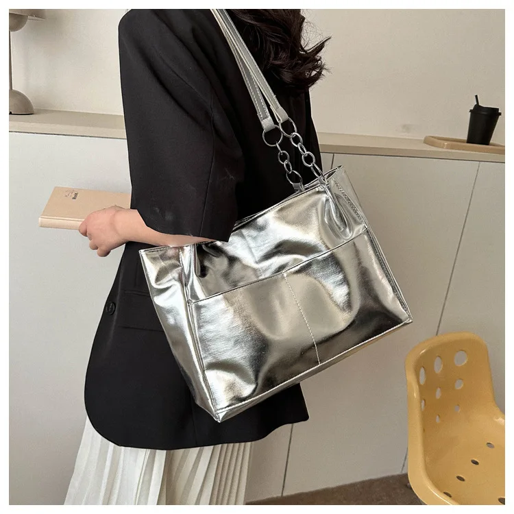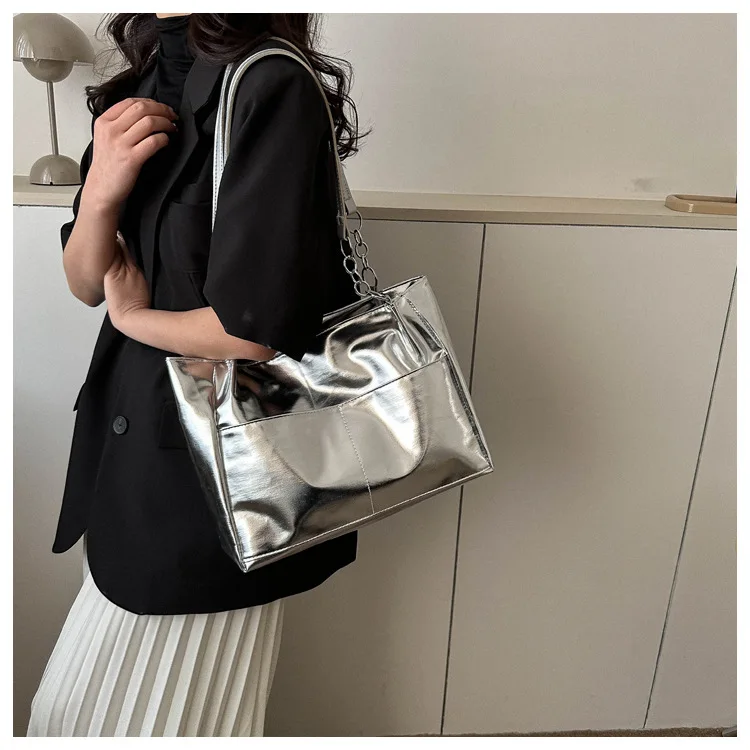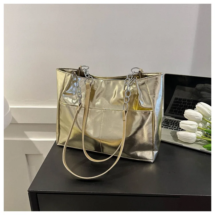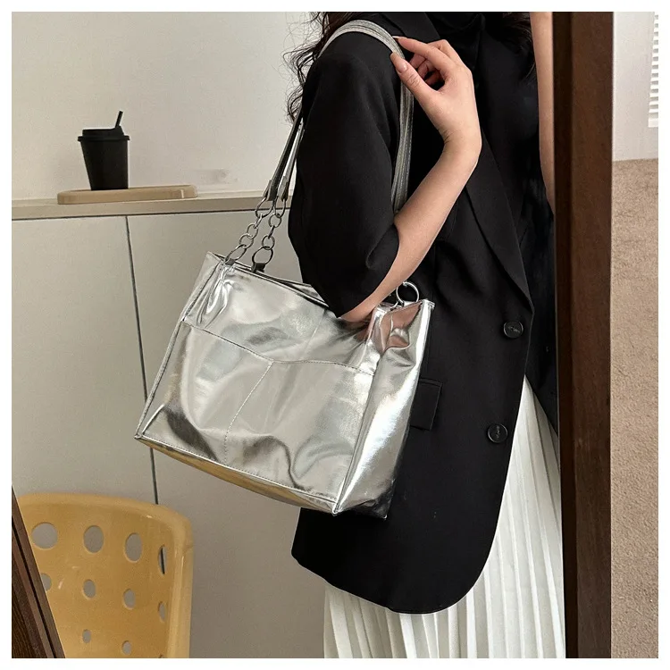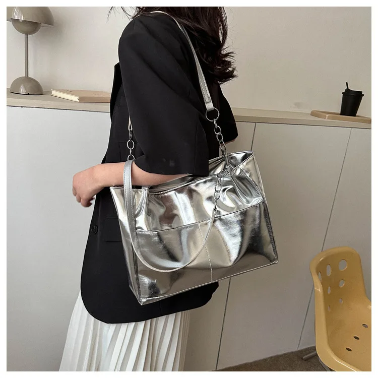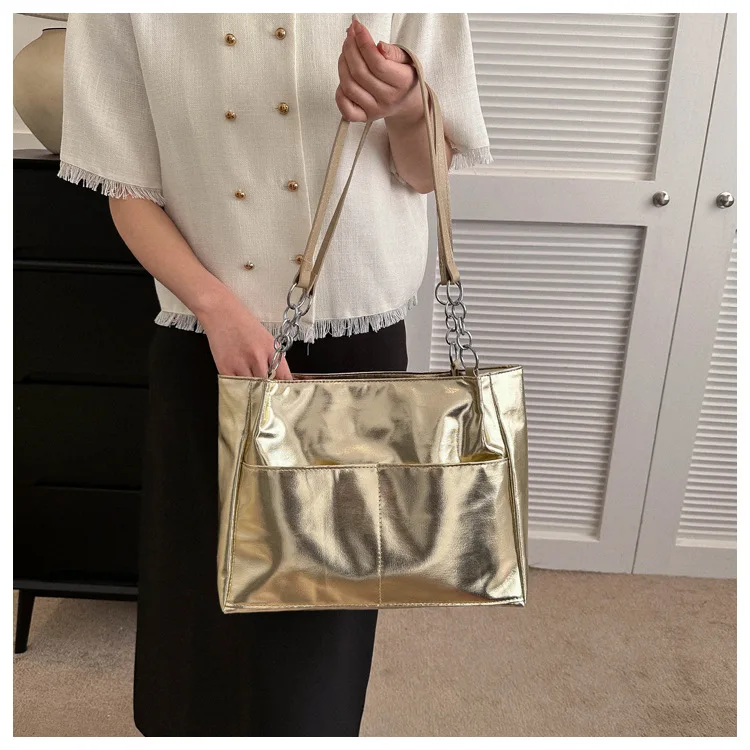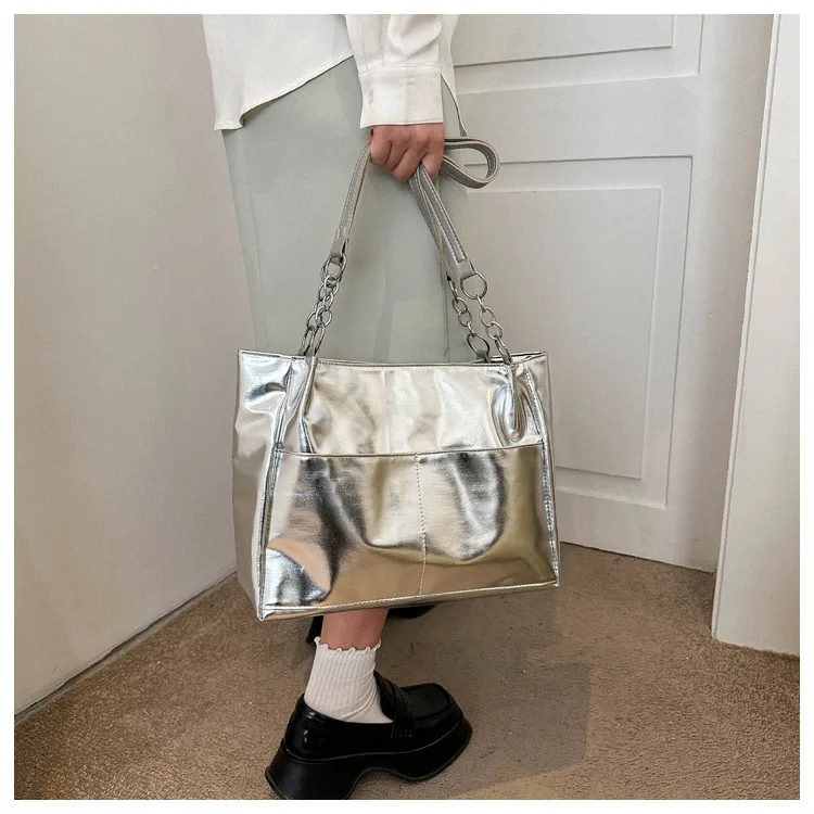 Casual Handbags For Women New Large-capacity Shoulder Bags Texture Bright Pu Leather Tote Bags Chain Elegant Bags