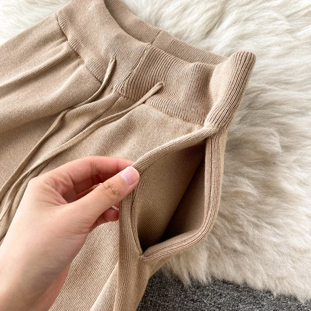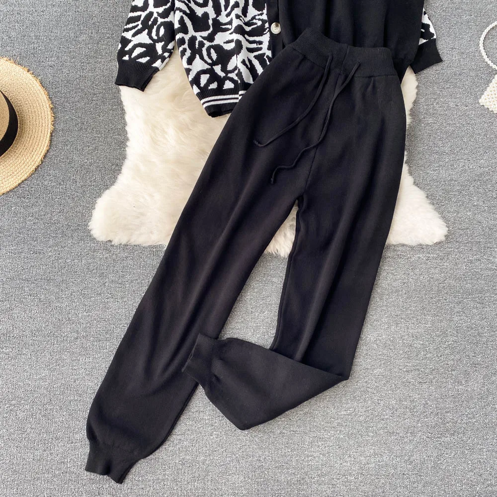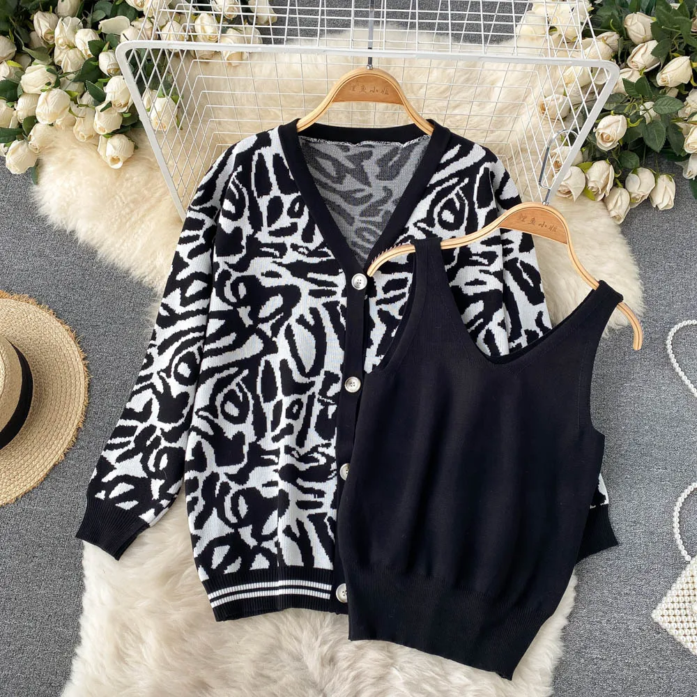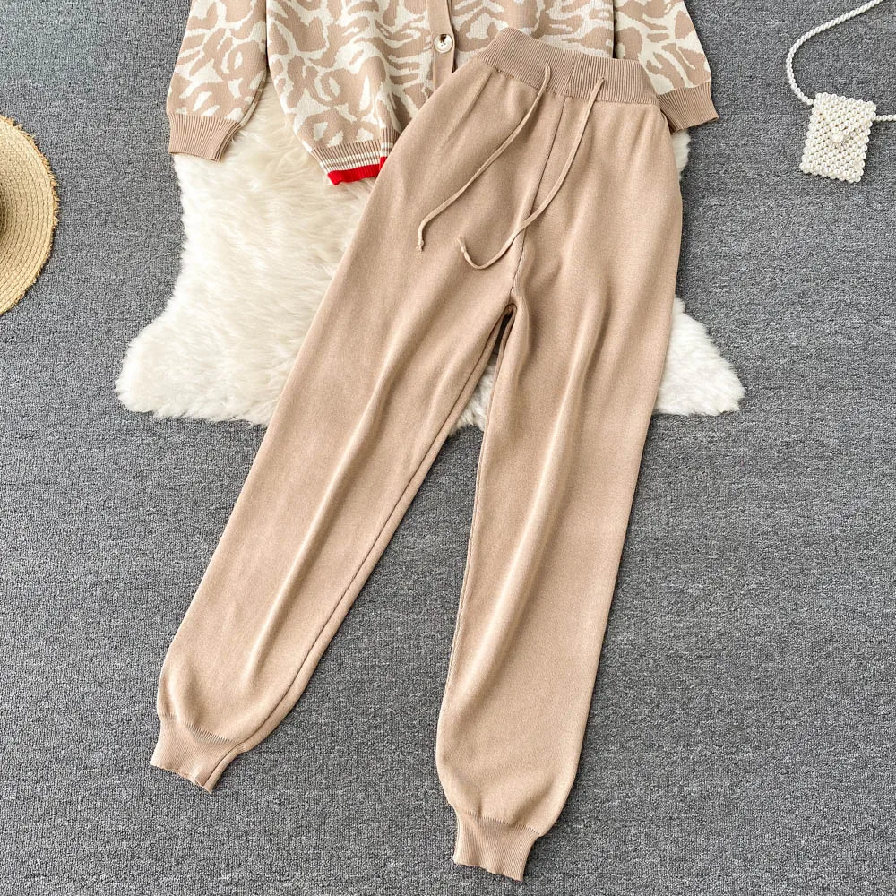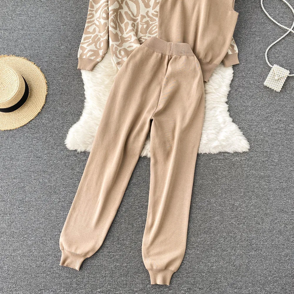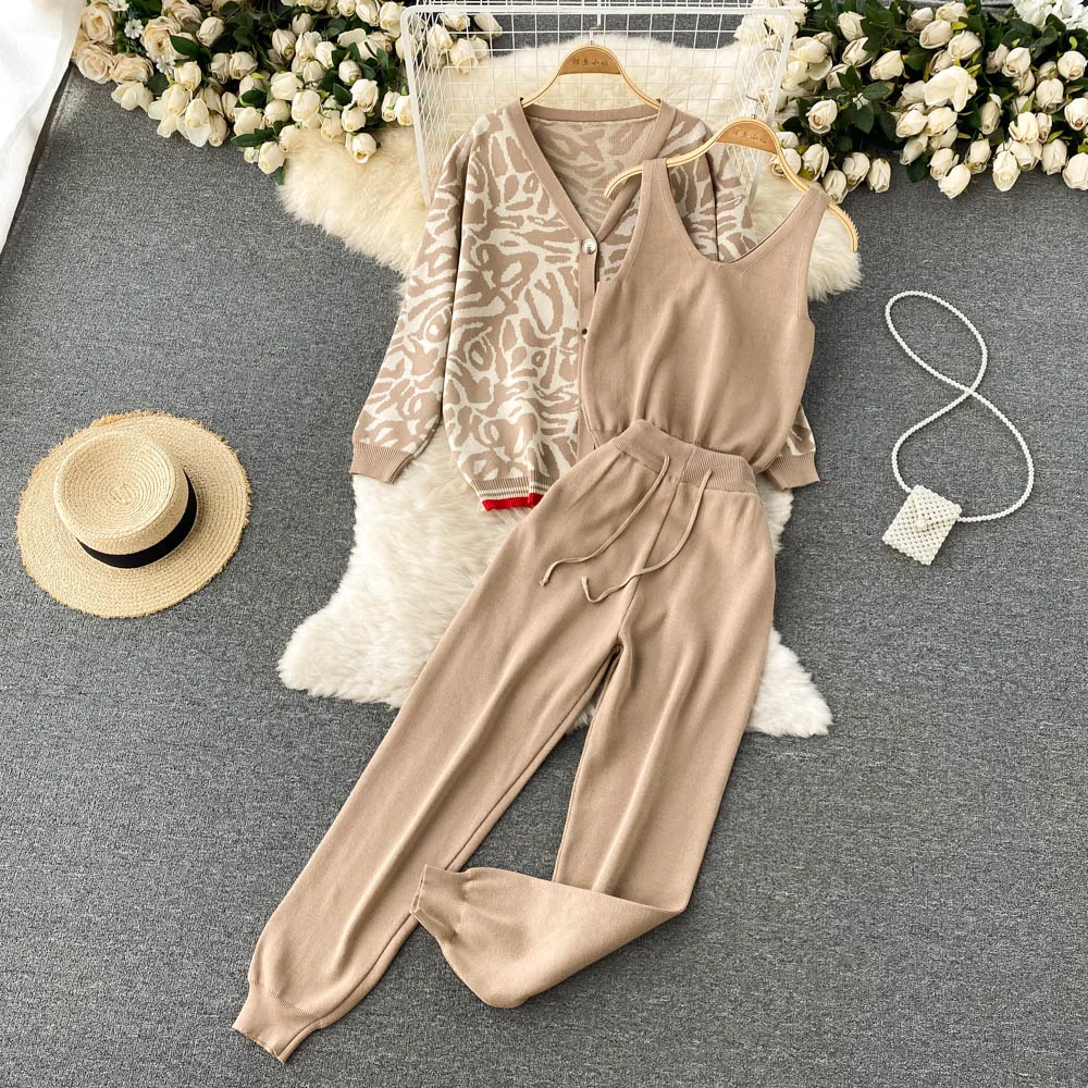 Casual Knitted Suit Women Loose All-match Cardigan Jacket Slim-fitting Vest With High Waist Trousers Fashion Three-piece Suit