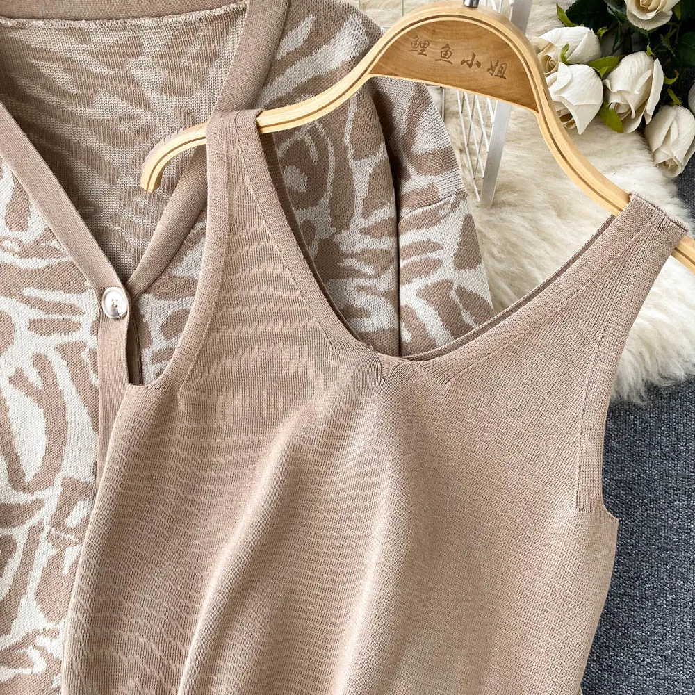 Be the first to review “Casual Knitted Suit Women Loose All-match Cardigan Jacket Slim-fitting Vest With High Waist Trousers Fashion Three-piece Suit”