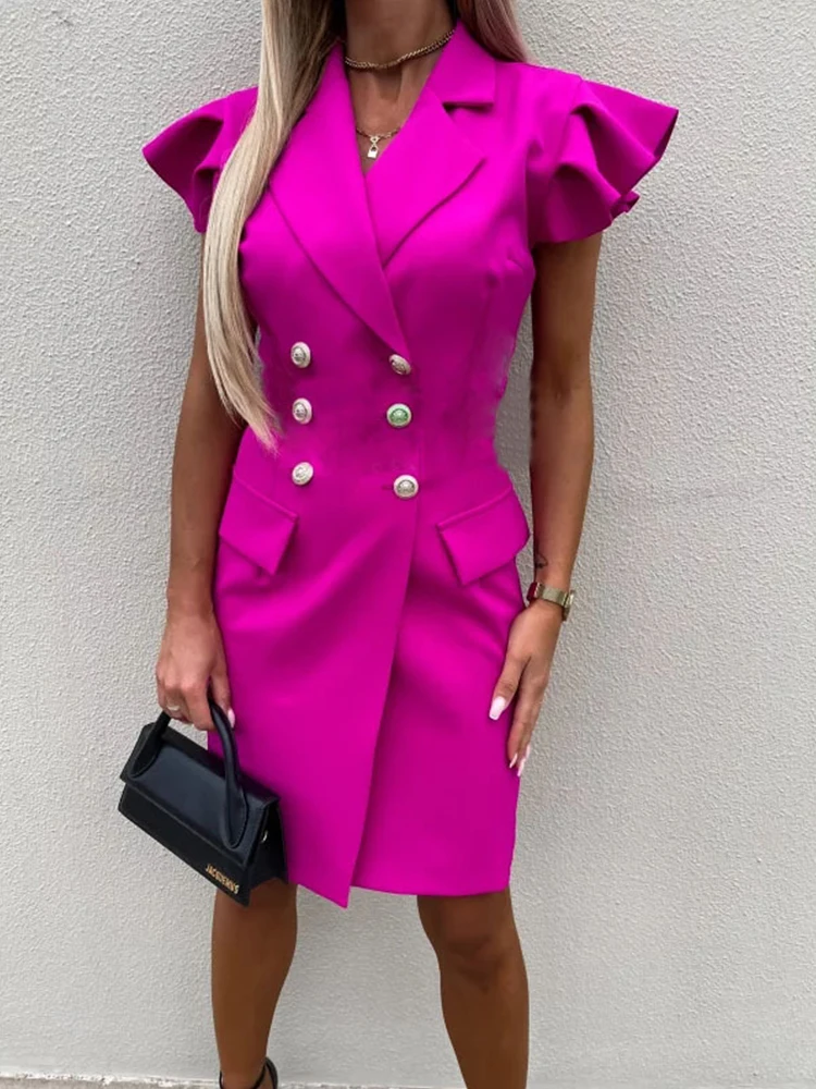 Casual Long Sleeve Blazer Beach Dress Spring V Neck Solid Slim Suit Dress Cover-Ups Elegant Women Straight Dress Bikini Cover-Up