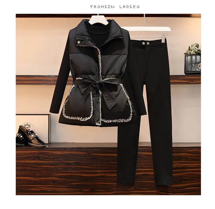 Casual Women Winter Warm Tracksuit Jacket Coat Slim Sweatershirt Top And Pencil pants Three Piece Set Outfit Clothing 4XL