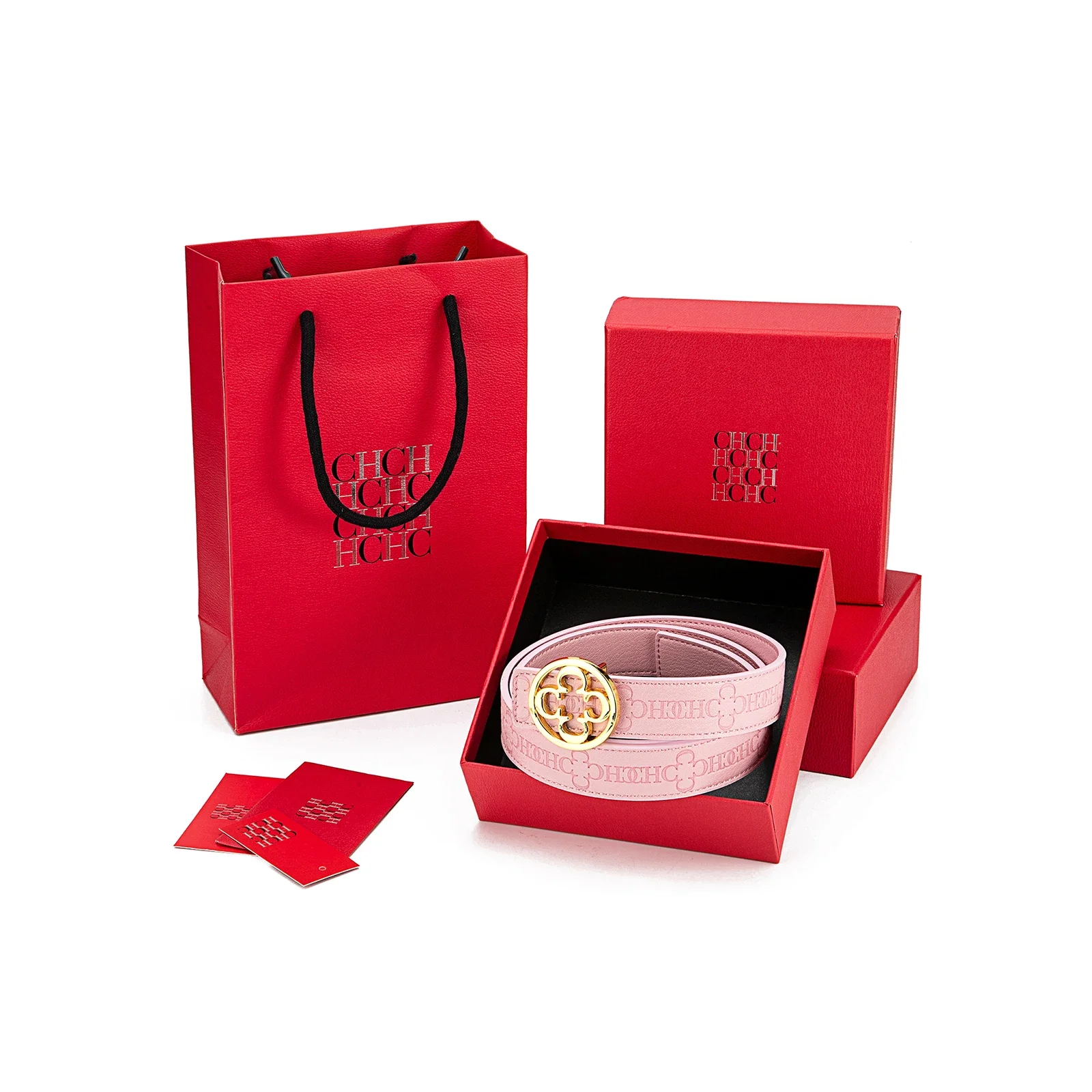 CHHC CHCH HCHC Christmas New Neutral Belt Letter Embossed Retro Design Metal Head Genuine Leather Fashion Everyday Versatile