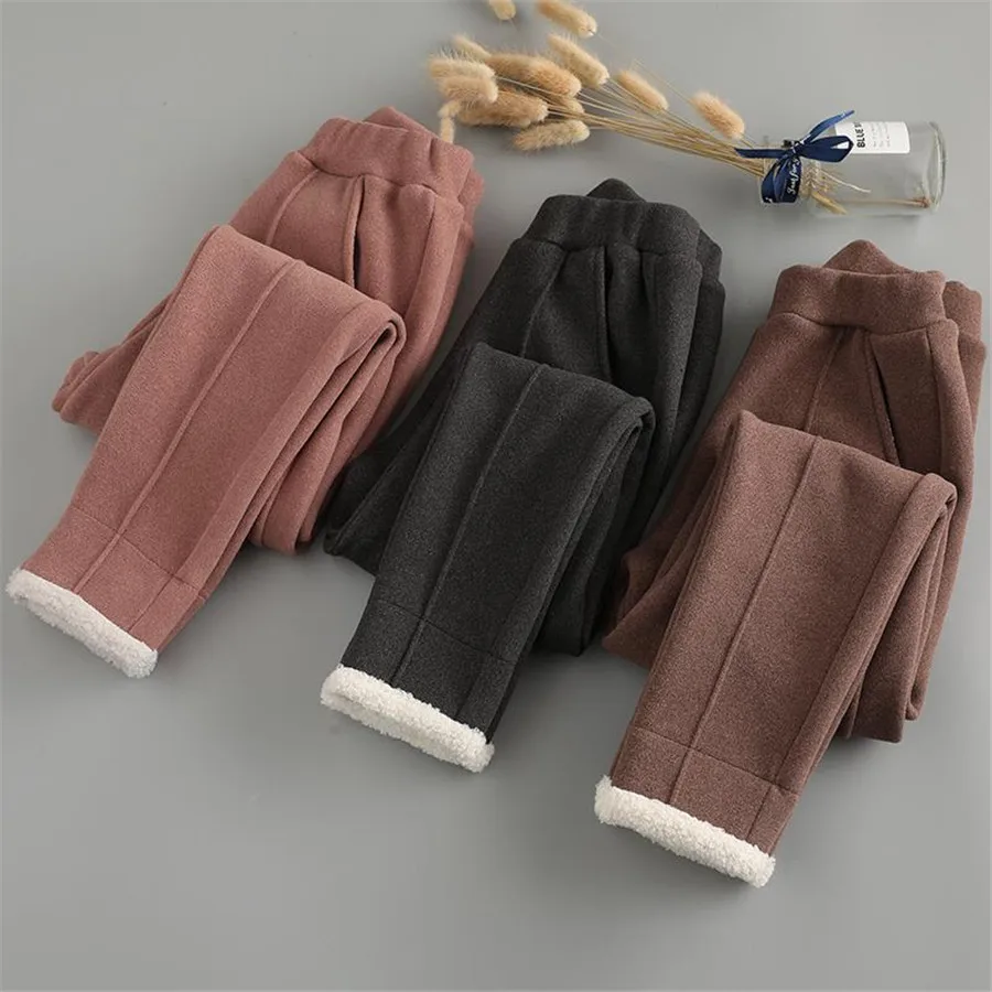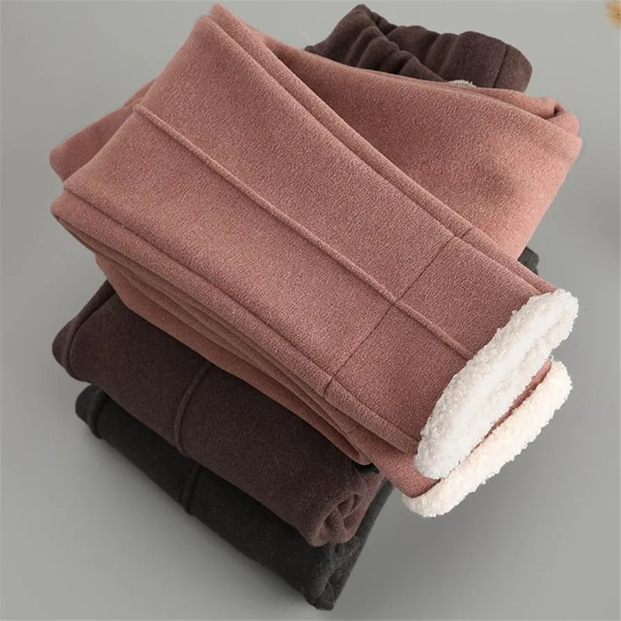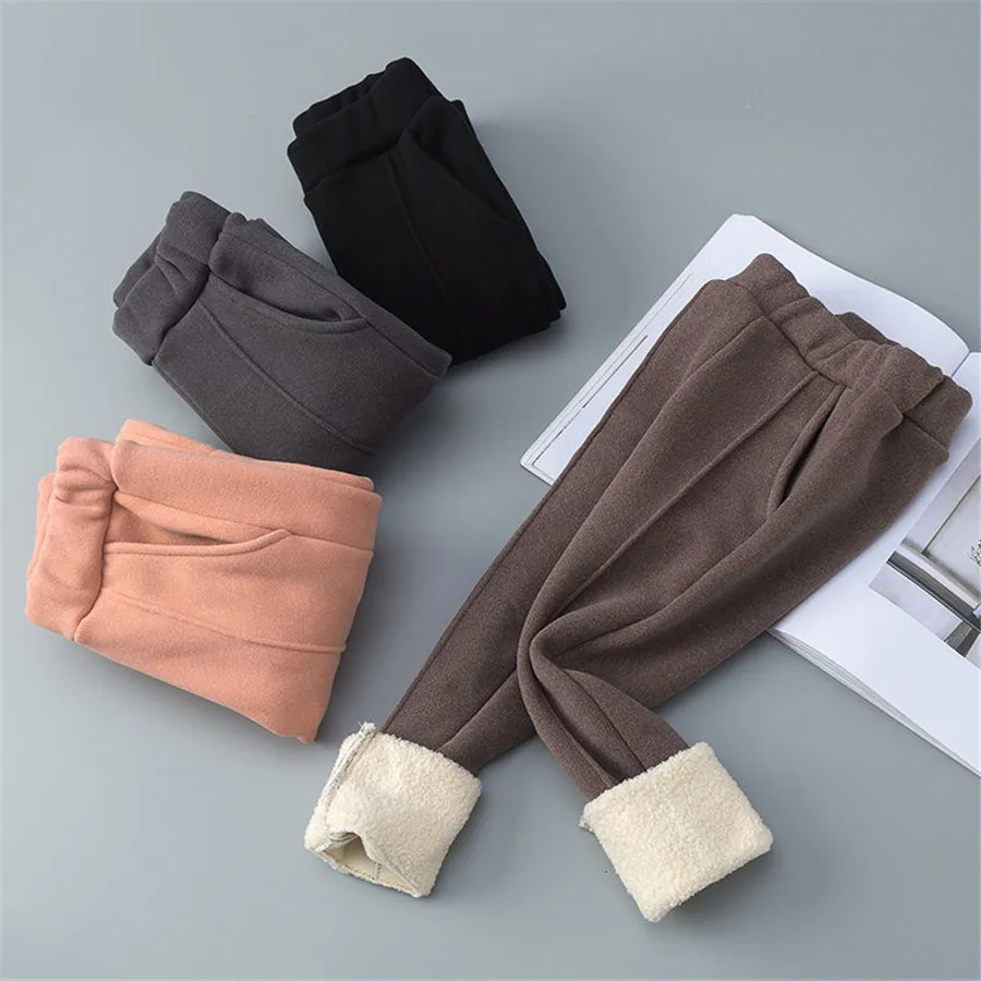 Children Lamb Cashmere Pants Thick Warm Fleece Kids Winter Clothes Boys Girls Trousers for Baby Girls Woolen Fabric Pants