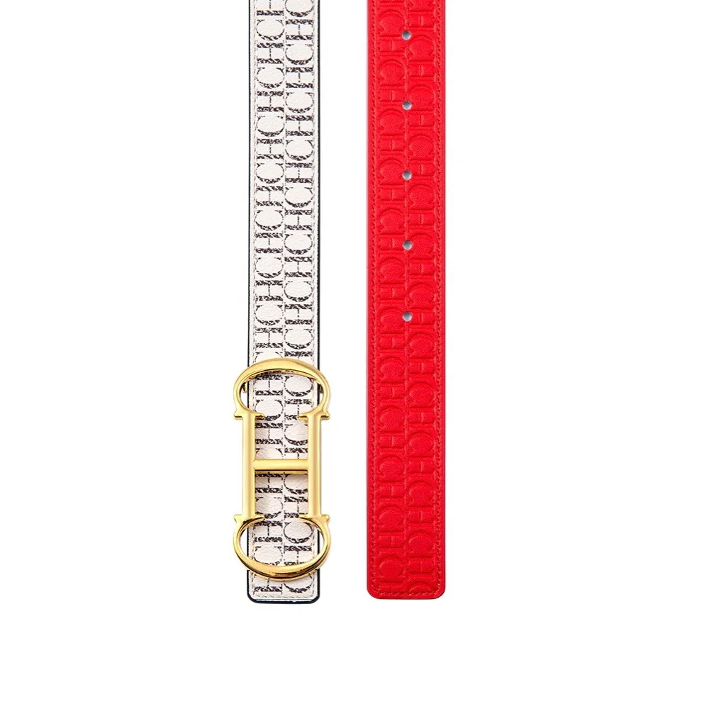 CILMI HARVILL CHHC Women’s Belt Neutral Two Size Metal Genuine Leather Multi Color Letter Double Sided Universal Design Gift Box