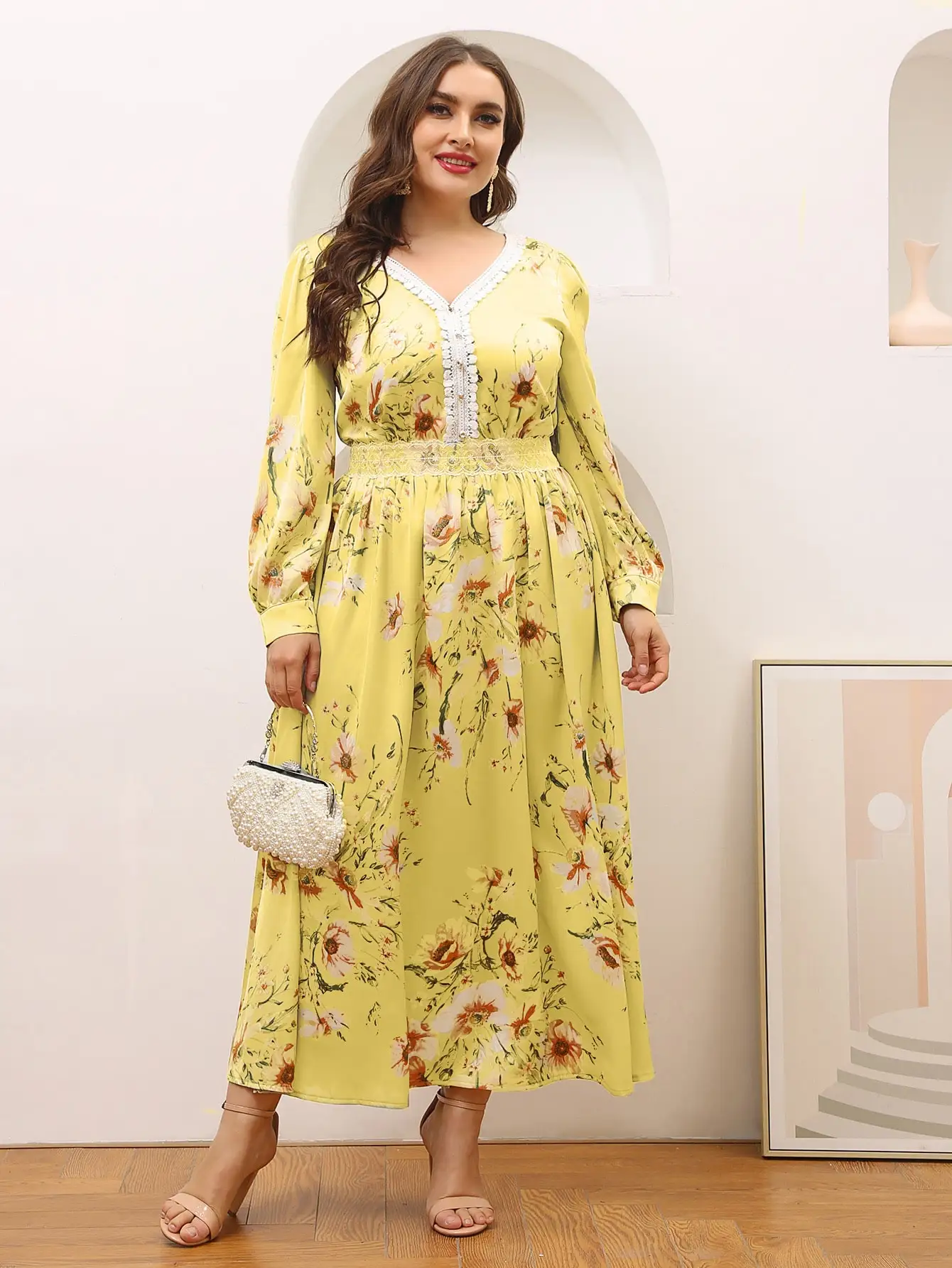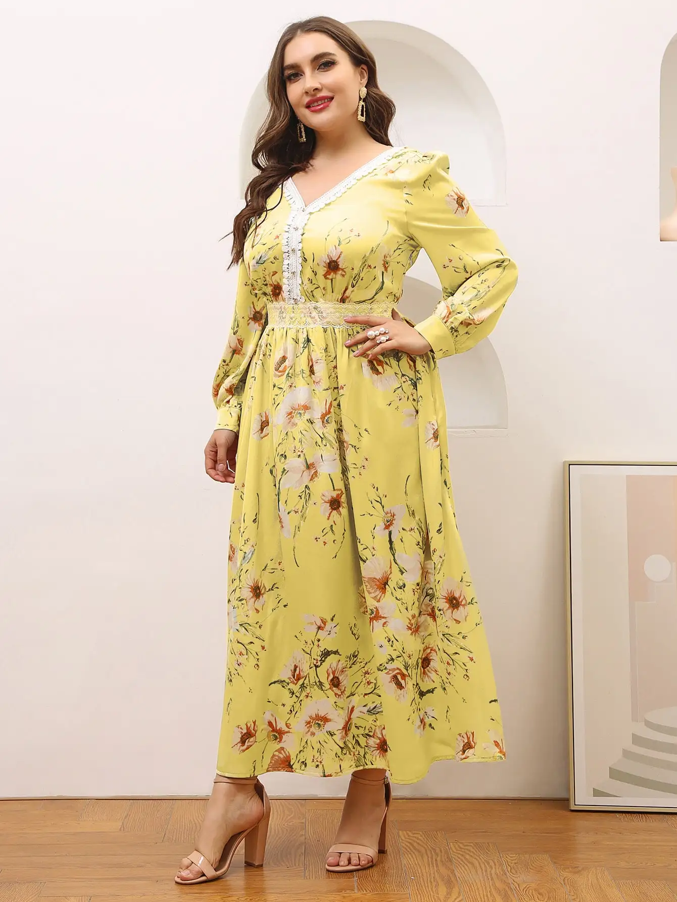 Clearance Price Plus Size Large Maxi Dress Spring Women Chic Elegant Floral Long Sleeve Party Evening Robe Clothing