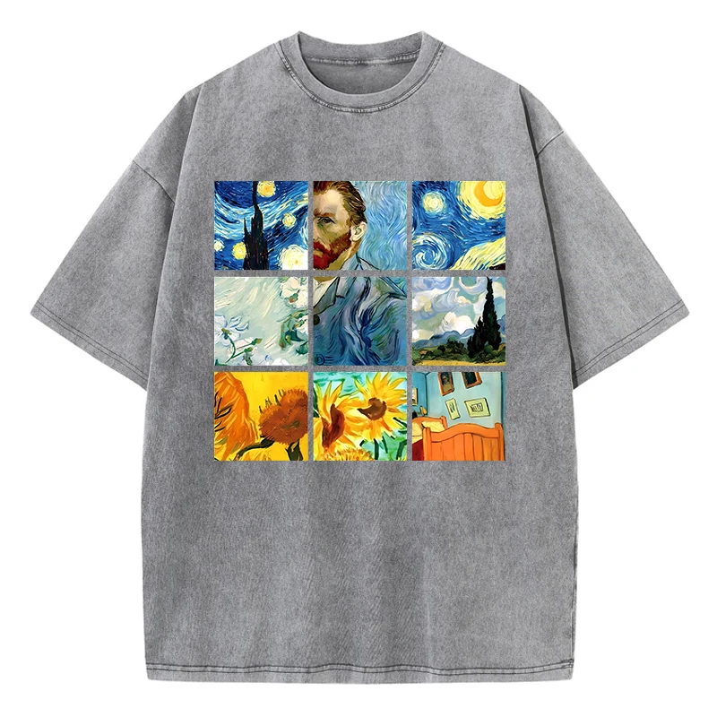 Be the first to review “Cotton Woman Washed T-Shirts Van Gogh’S Starry Night And Sunflowers Prints Tops Distressed Oversized Tees Casual Female Clothes”