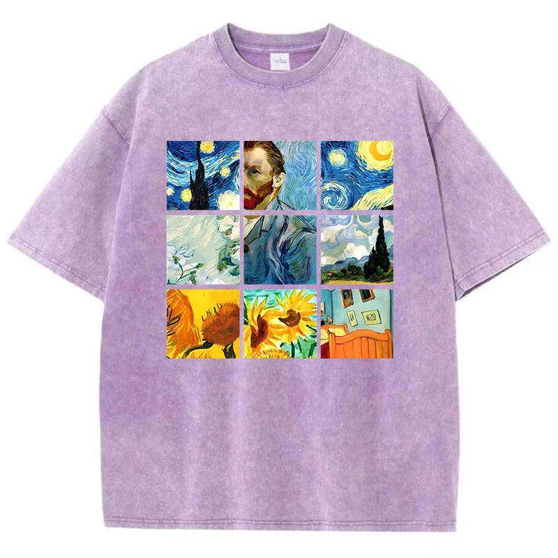 Be the first to review “Cotton Woman Washed T-Shirts Van Gogh’S Starry Night And Sunflowers Prints Tops Distressed Oversized Tees Casual Female Clothes”
