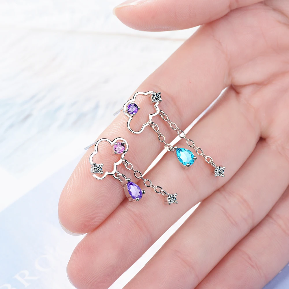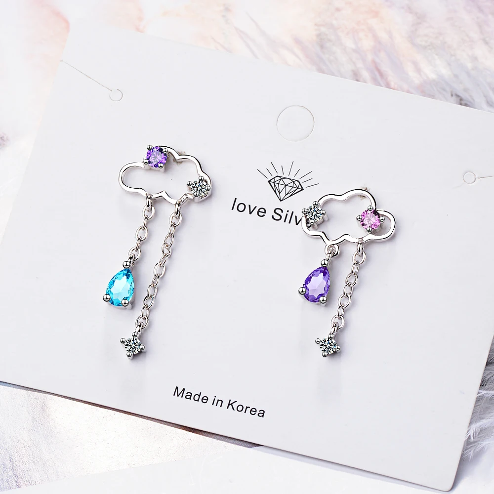 Cute Asymmetric Cloud Earrings For Women 925 Sterling Silver Water Drop Tassel Earring Brincos Oorbellen S-e810