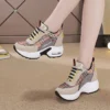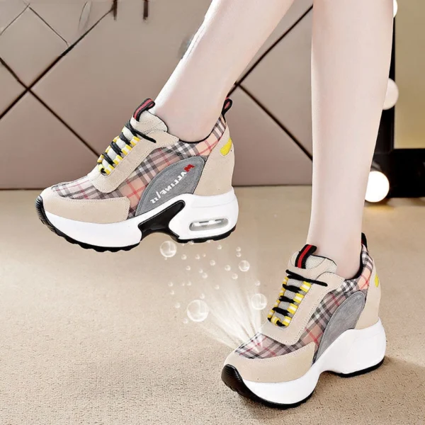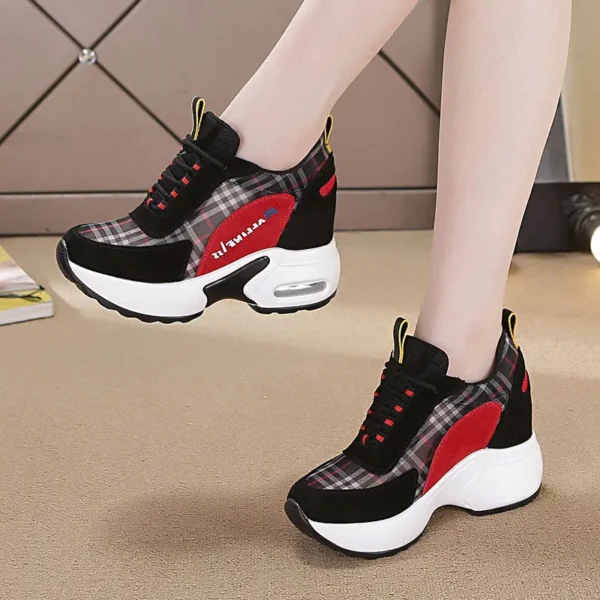 Dad Shoes Women’s Breathable Platform Elevator Wild Slimming Casual Sneakers Lace-up Plaid Thick Bottom