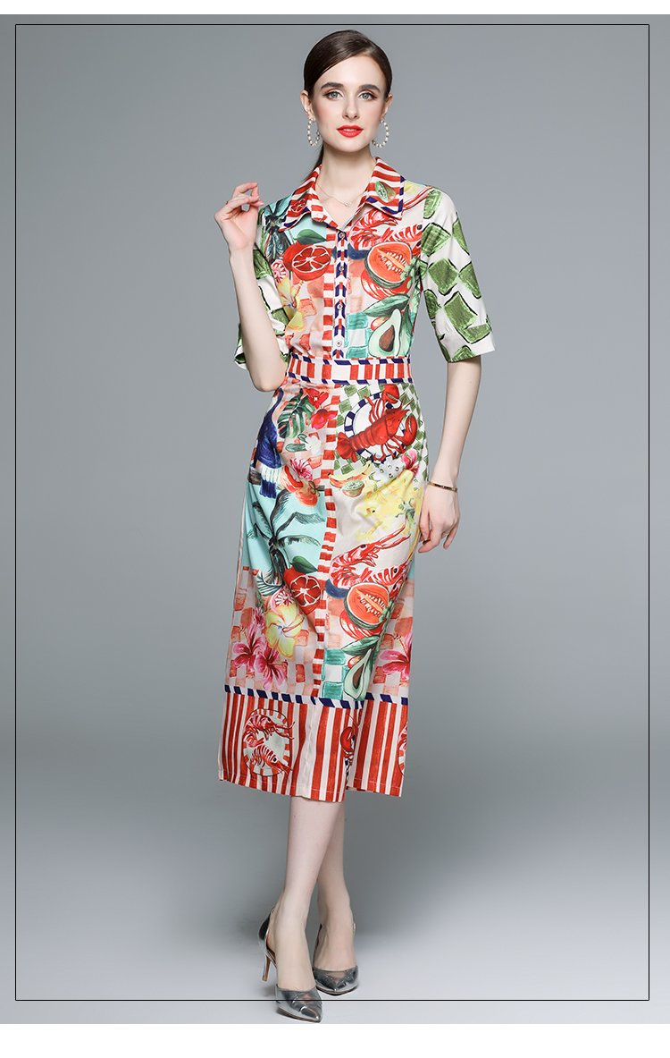Be the first to review “Designer Fashion Runway Skirt Suit Summer Women’s Lapel Fruit Print Shirts High Waist Pencil Skirt 2 Piece Set Outfits”