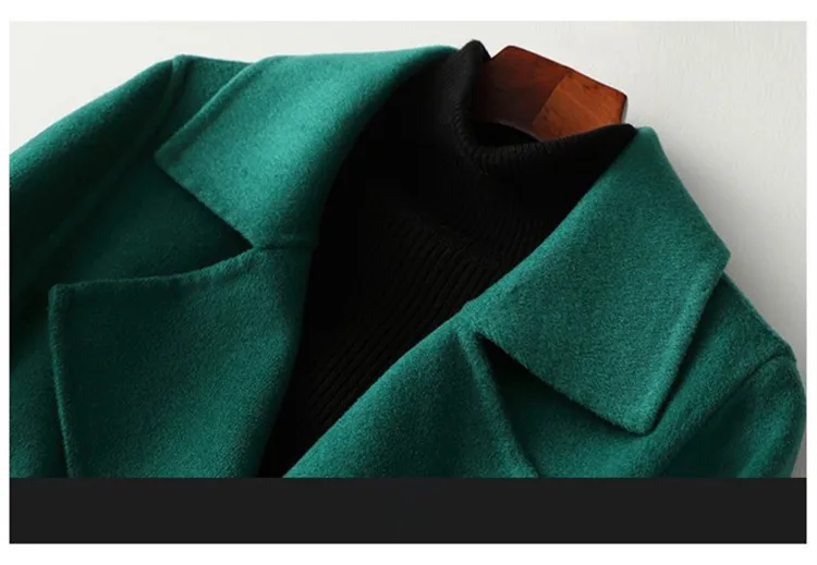 Double-sided Wool Coat Women Autumn-Winter New Solid Color Lapel Lace-up Pockets Mid-length Jacket Slim Commuter ZM143