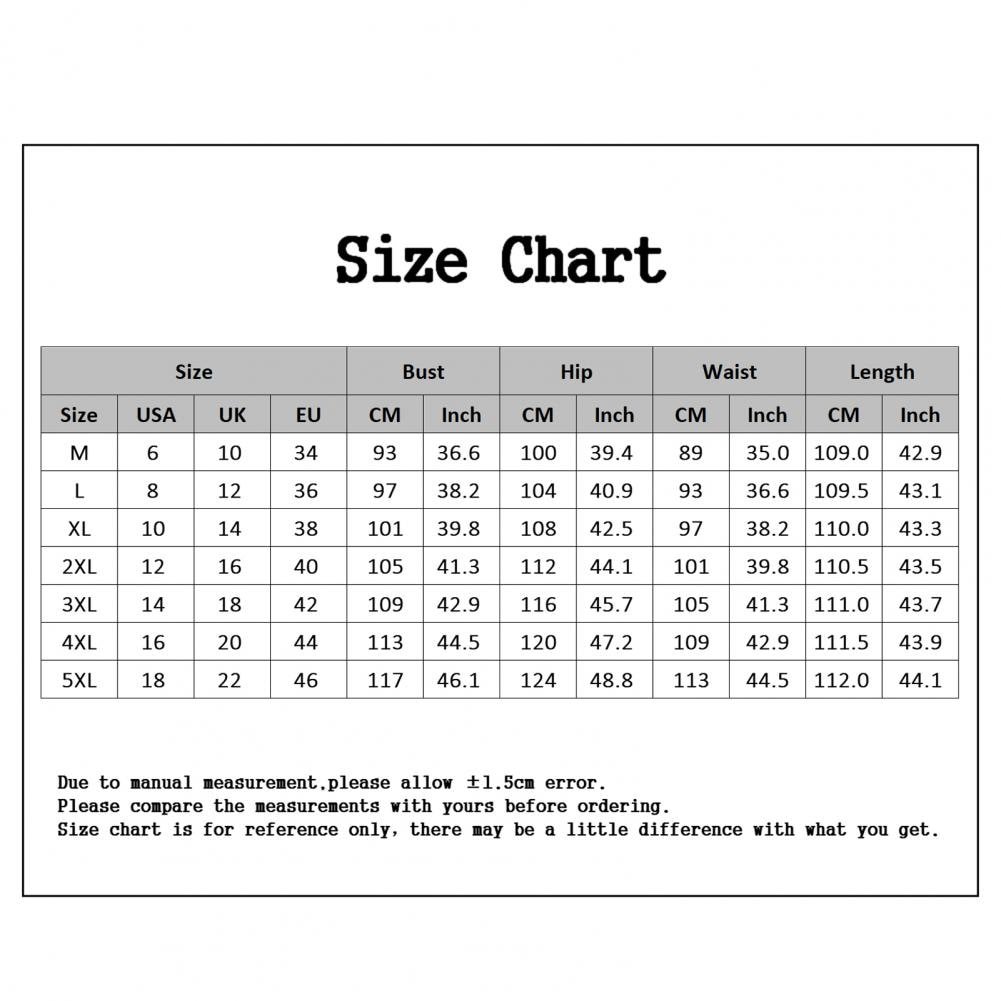 [Our Size 5XL] Bust: 117cm/46.1″, Waist: 113cm/44.5″, Hip: 124cm/48.8″, Length: 112cm/44.1″ (Approx.)