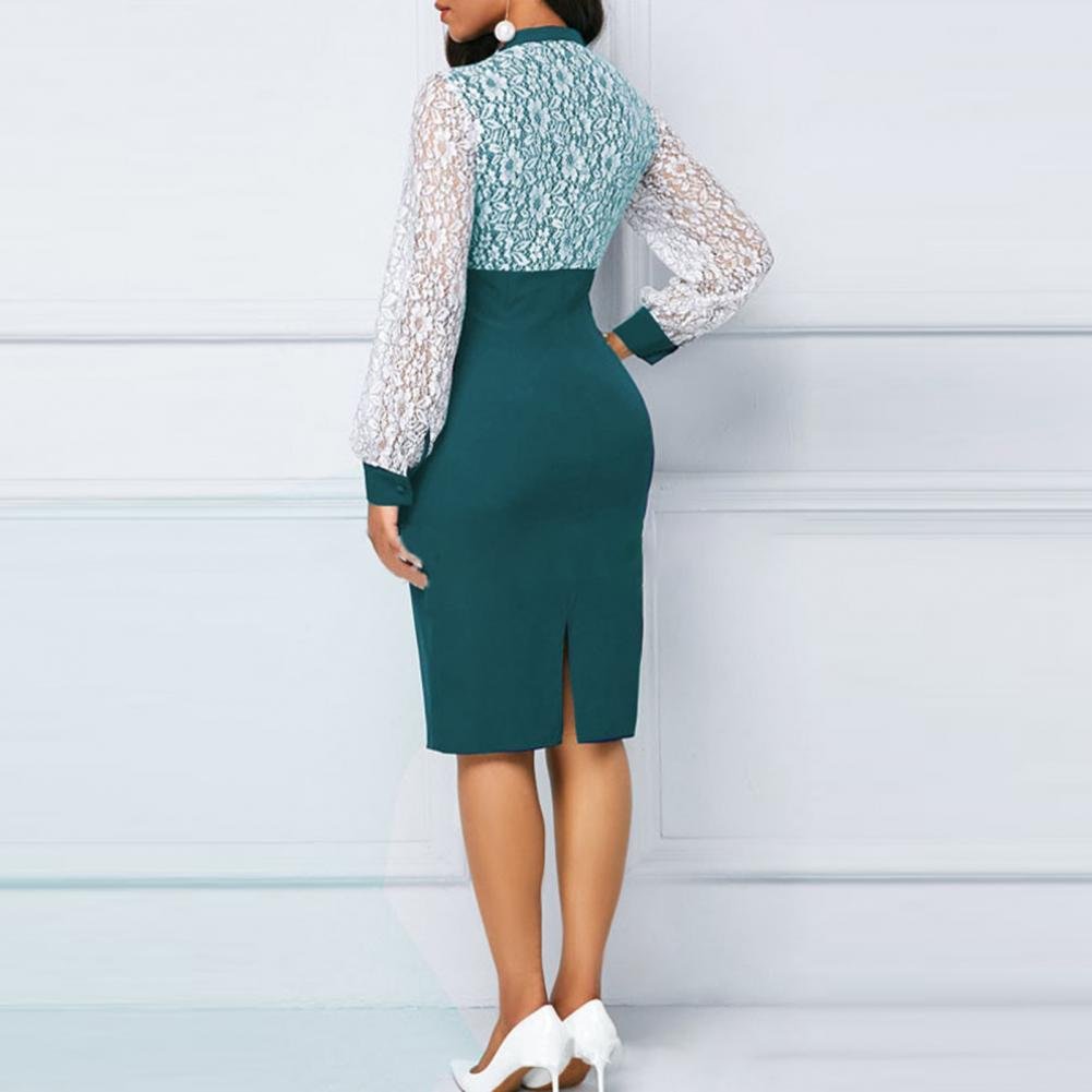Be the first to review “Dress Stylish Long Sleeve Lace-up Pencil Dress Spring Autumn Midi Dress Lace Patchwork for Prom”