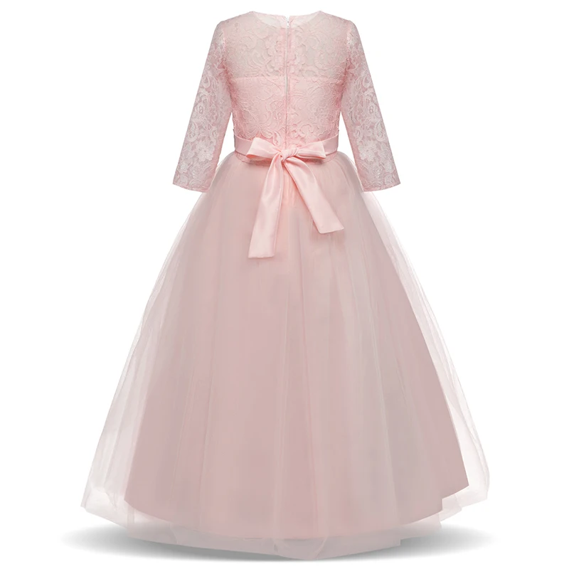 Elegant Princess Lace Dress Kids Flower Embroidery Dresses For Girls Vintage Children Dresses for Christmas Party Red Ball Gown