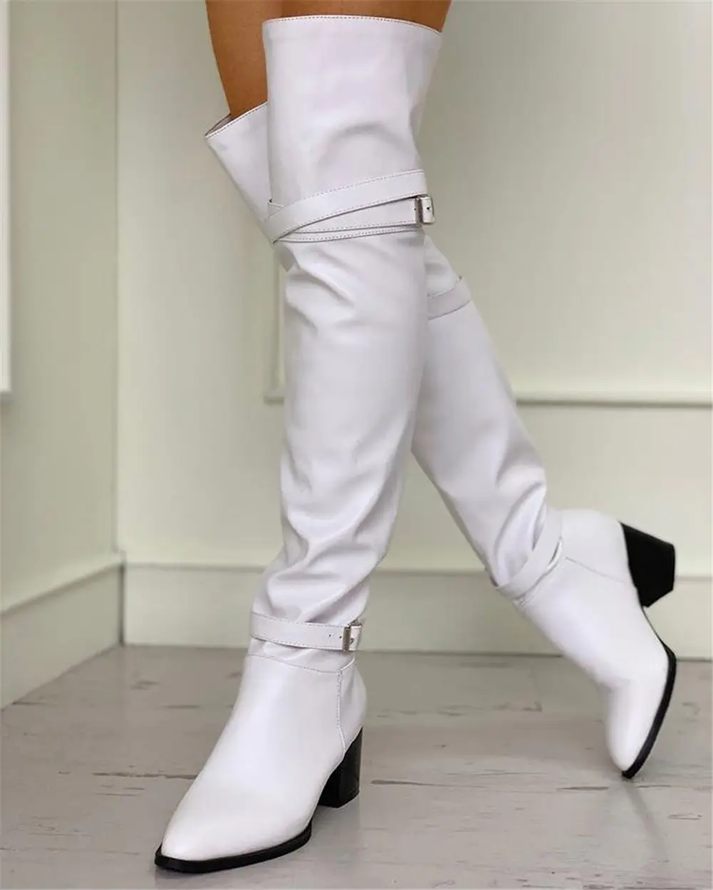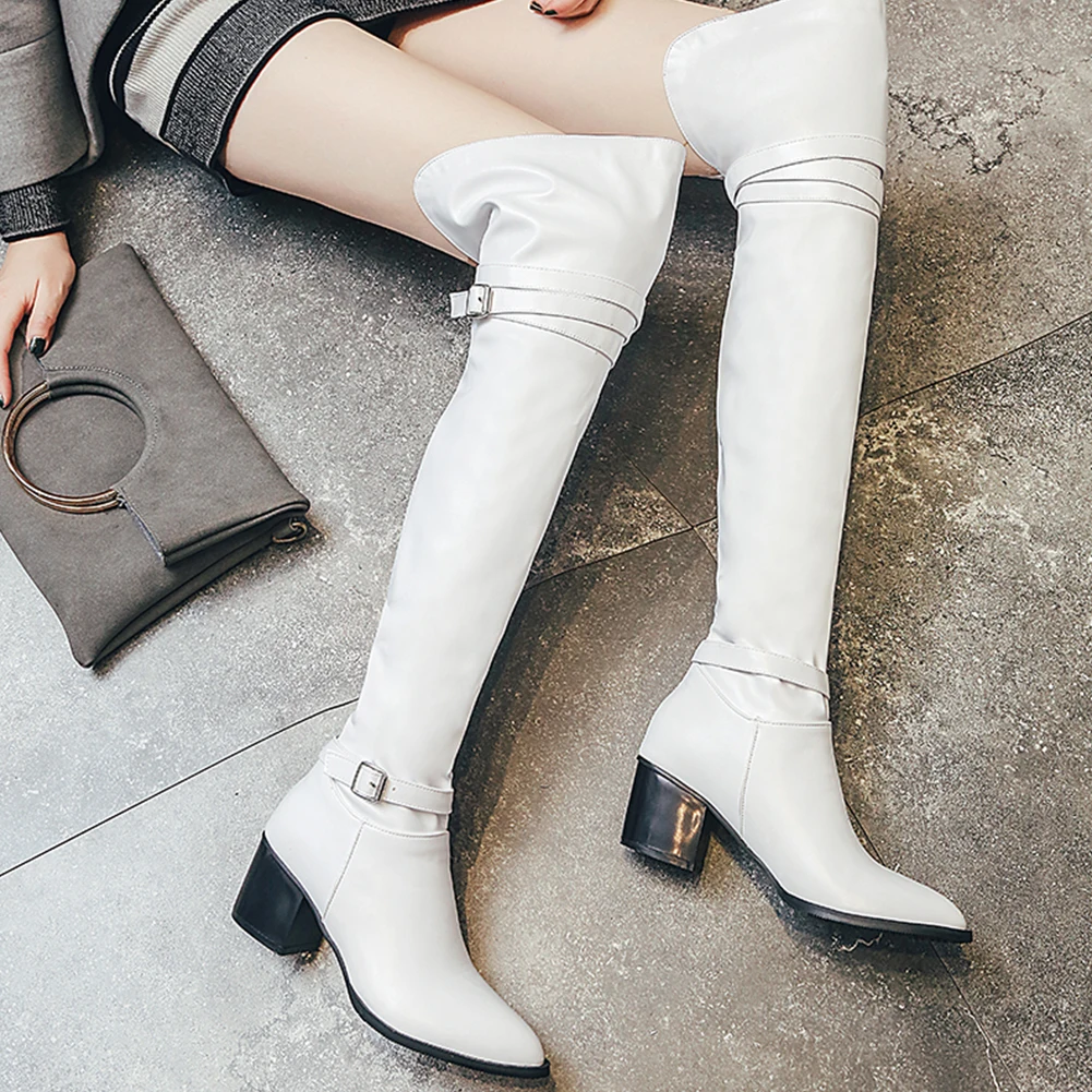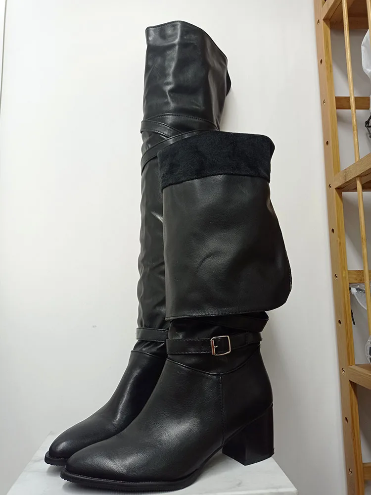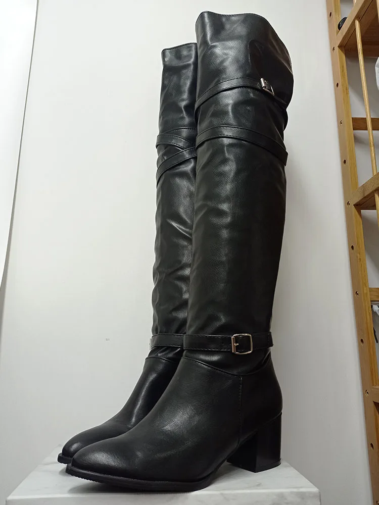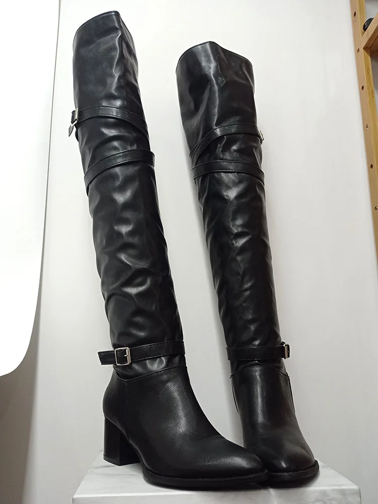 Fashion Big Size 33-48 High Quality Shoes Woman Over The Knee Boots Female Square Heels Shoes Women Long Boots Woman Shoes