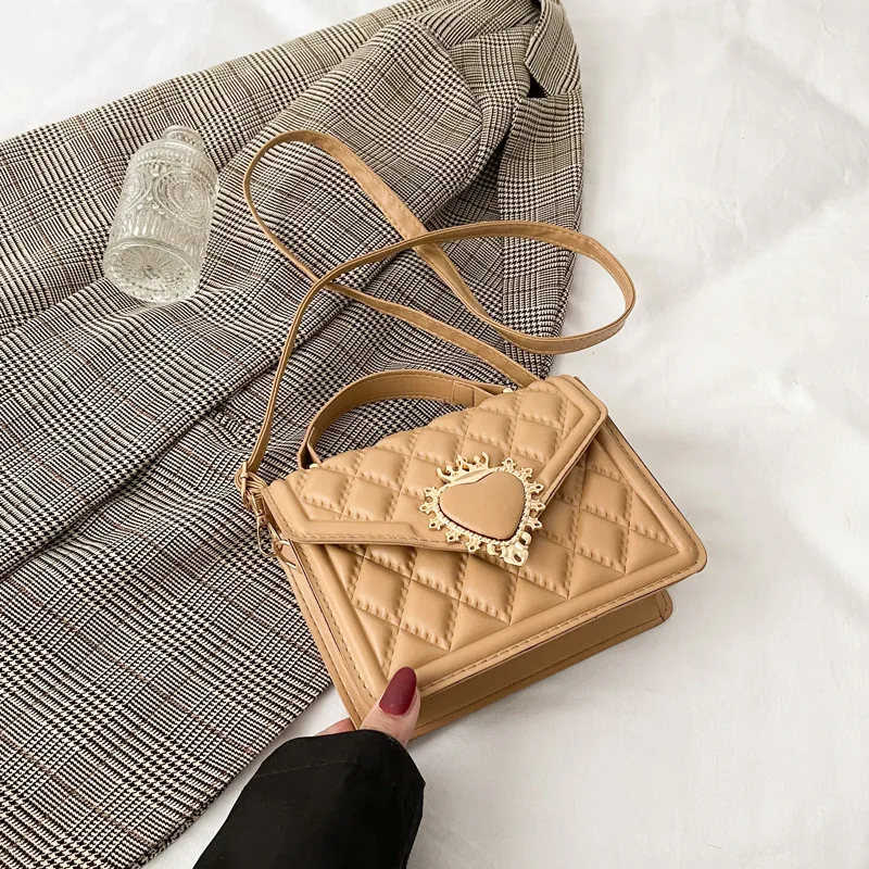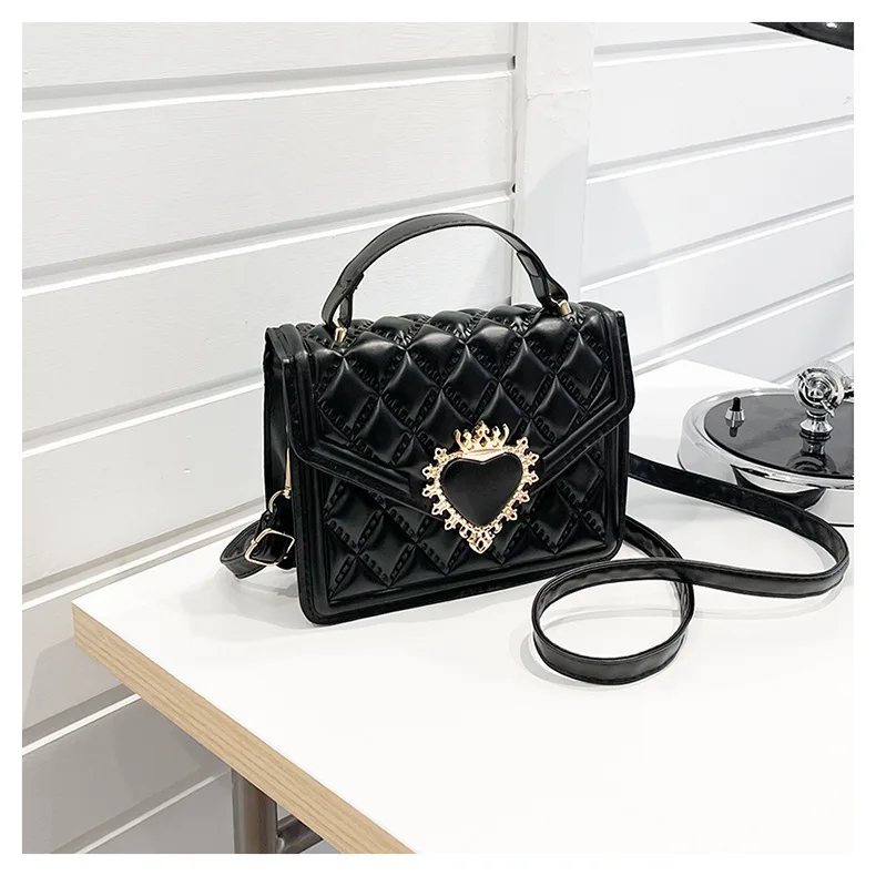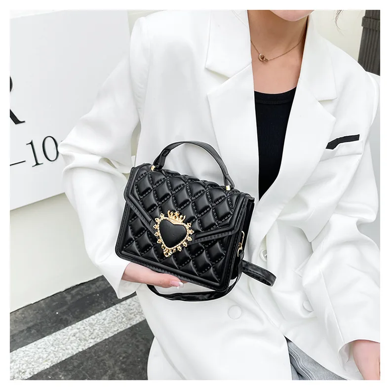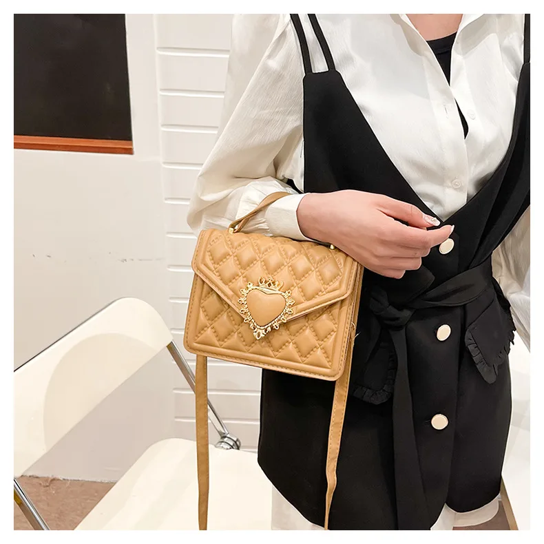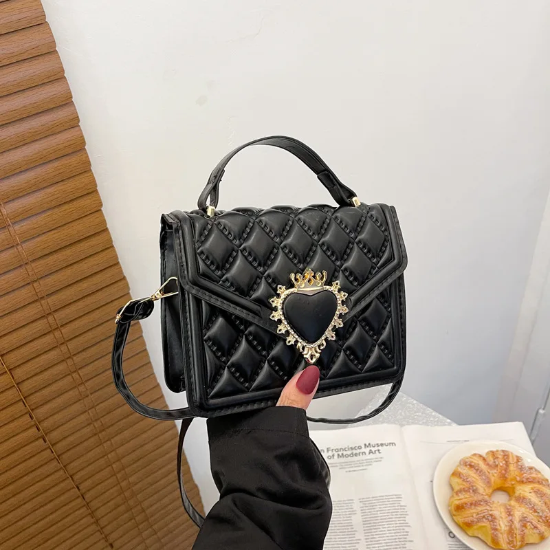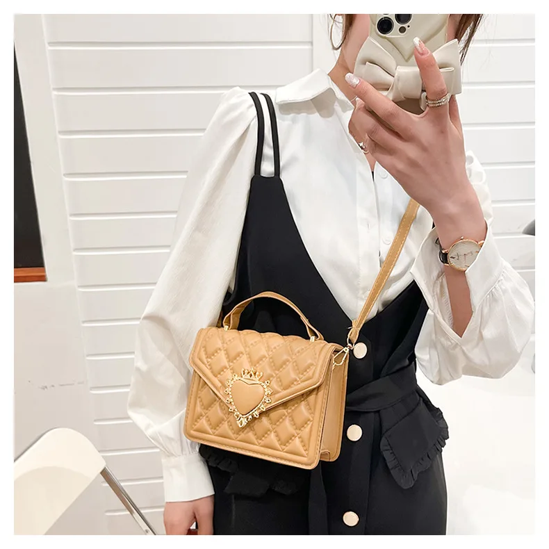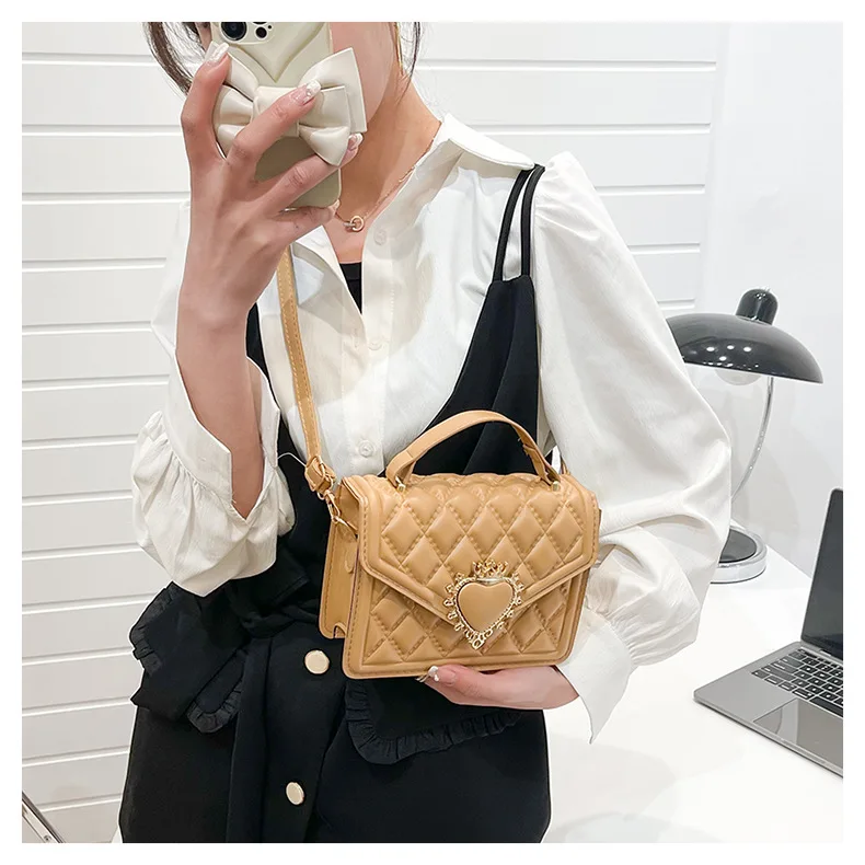 Fashion Handbags For Women Rhombus Shoulder Bags Embroidery Thread Portable Square Crossbody Bags Mahogany Metal Sheet Bags