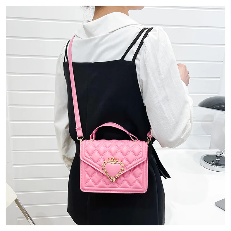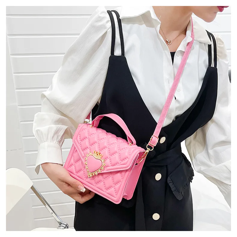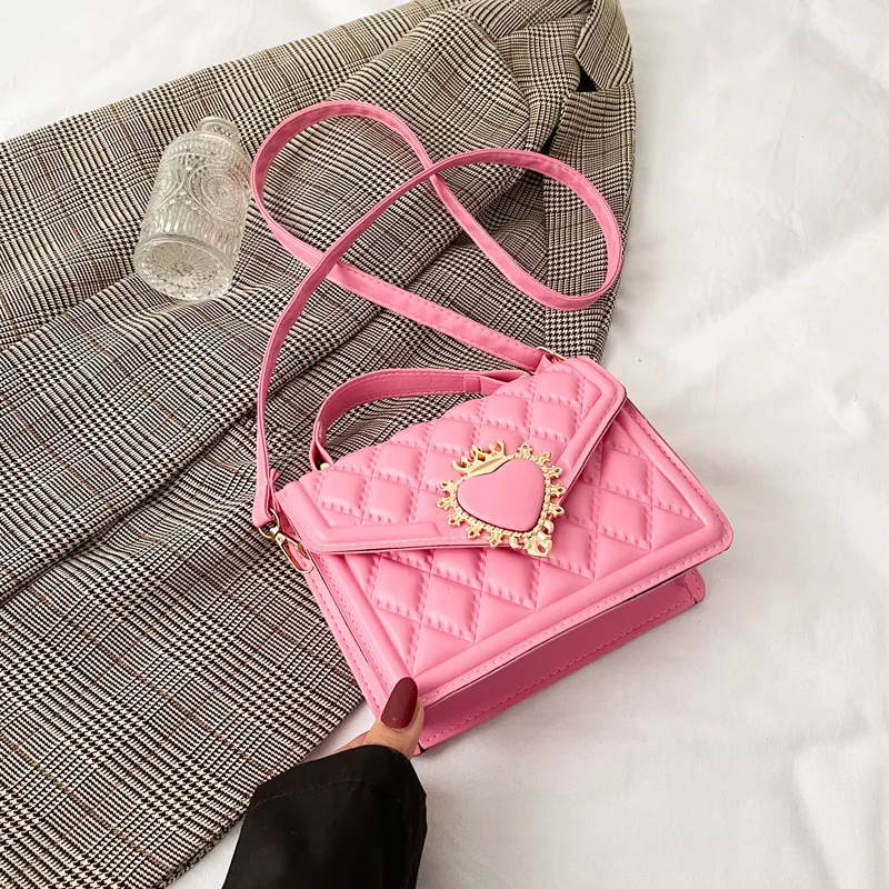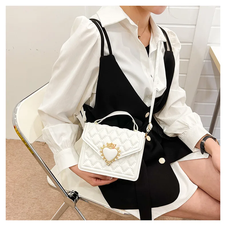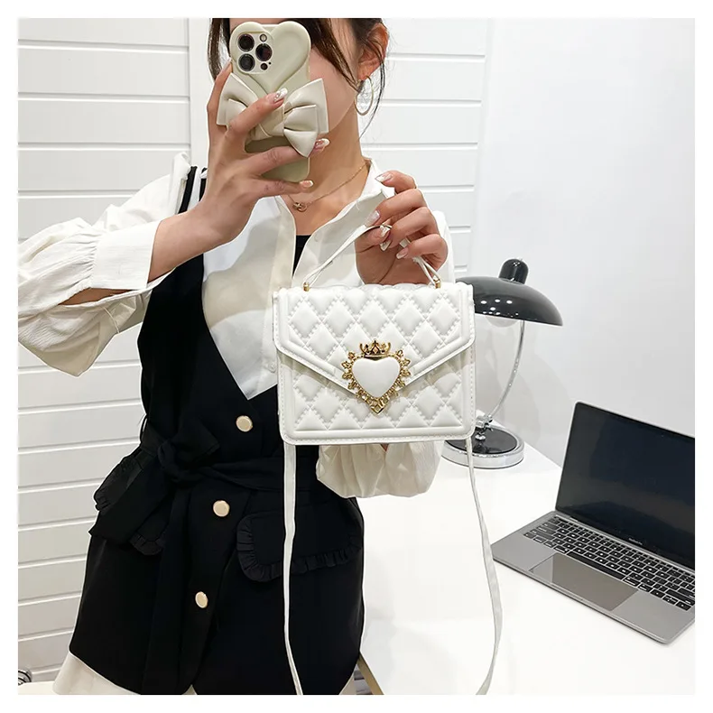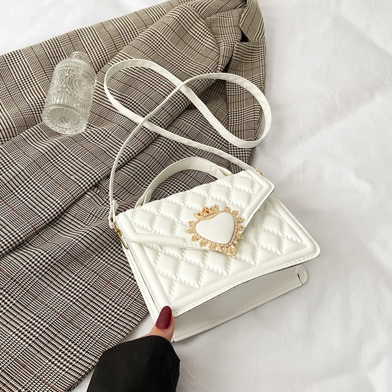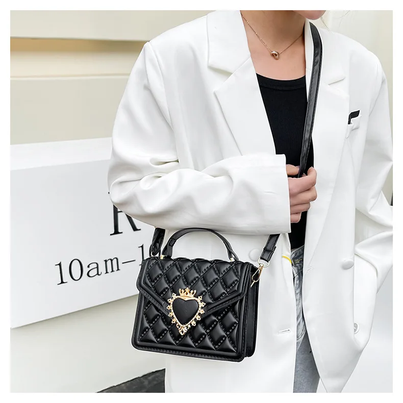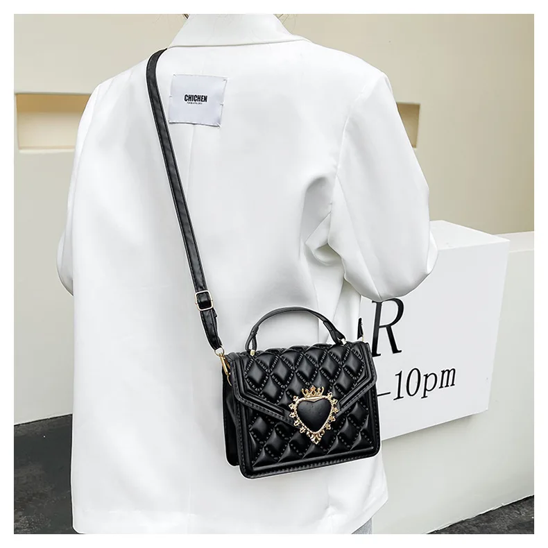 Fashion Handbags For Women Rhombus Shoulder Bags Embroidery Thread Portable Square Crossbody Bags Mahogany Metal Sheet Bags