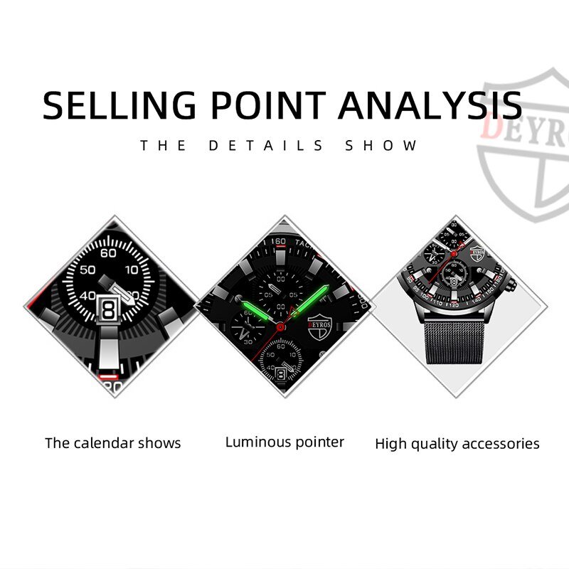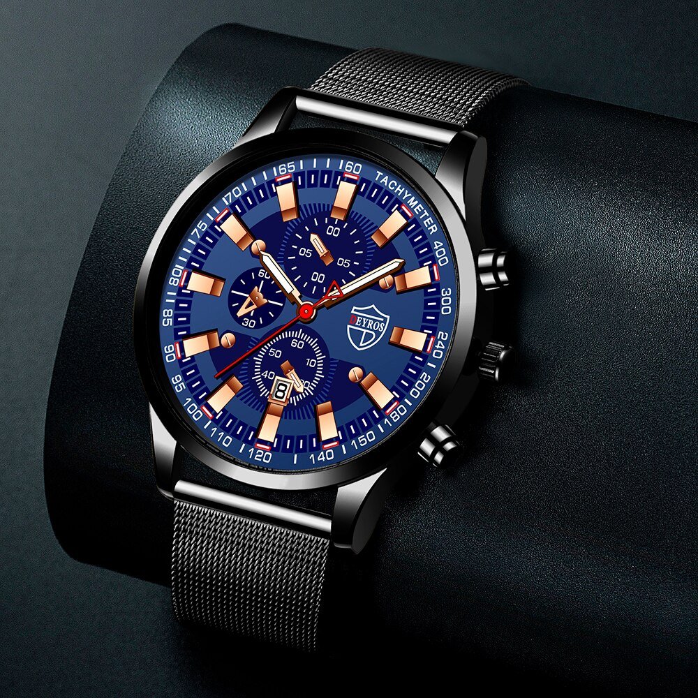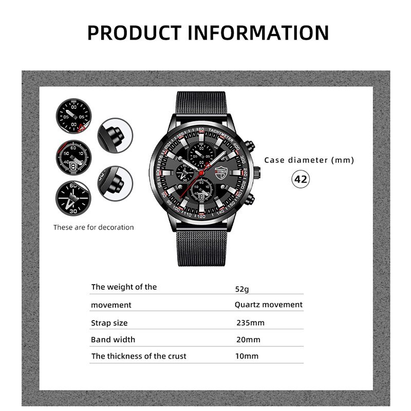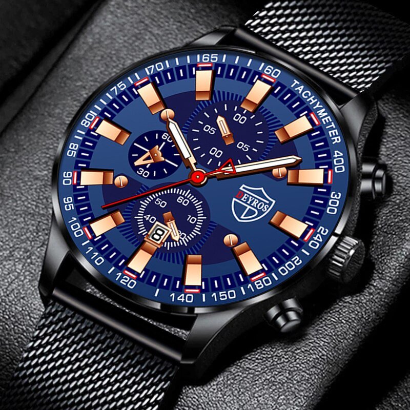 Fashion Mens Sports Watches for Men Business Stainless Steel Mesh belt Quartz Wrist Watch Luxury Man Casual Luminous Clock