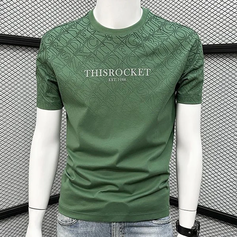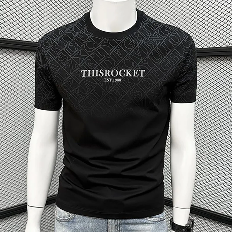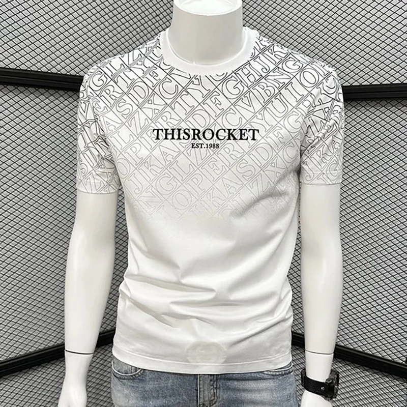 Fashion O-Neck Printed Casual Gradient Letter T-Shirts Men Clothing Summer New Loose Korean Tops All-match Tee Shirt