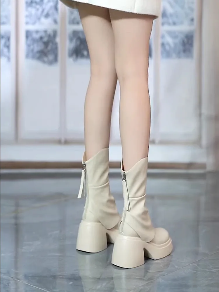 Fashion Round Toe Thick Sole All-match Ankle Boots Women’s Chunky Heels Platform Comfortable Short Boots Increase Shoes