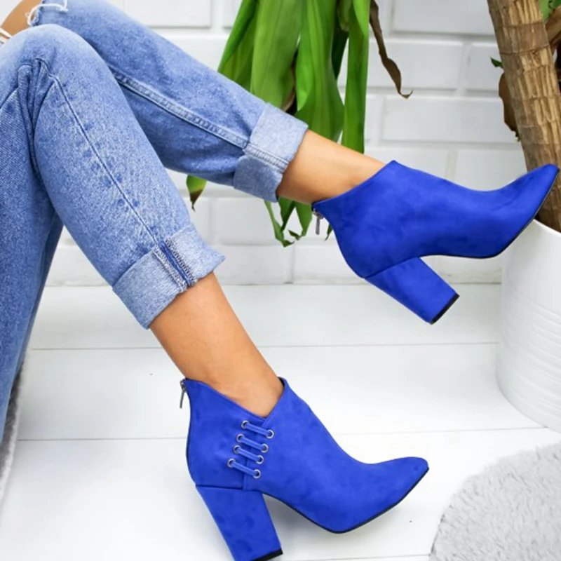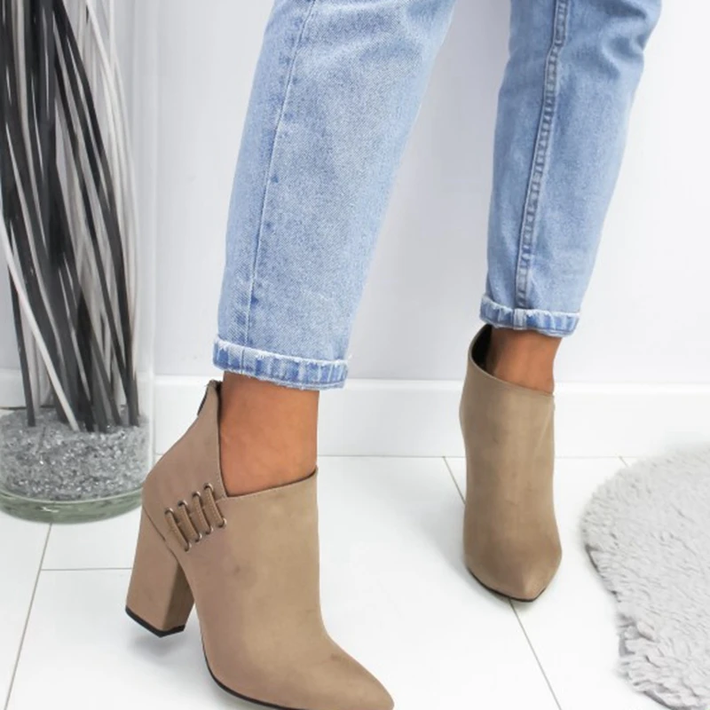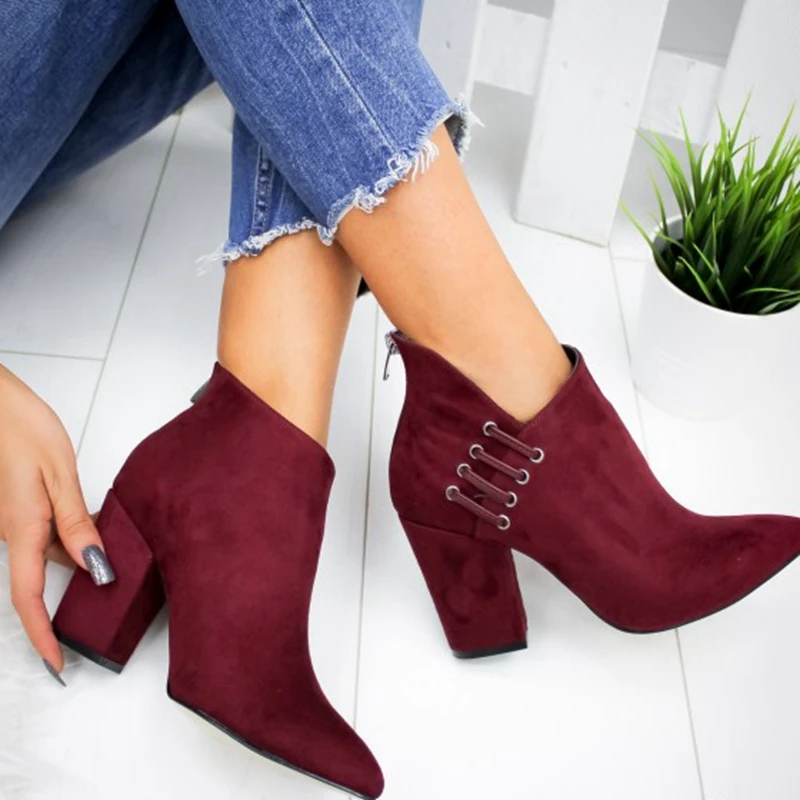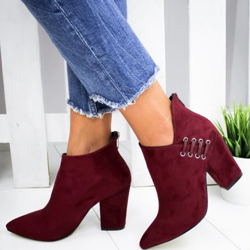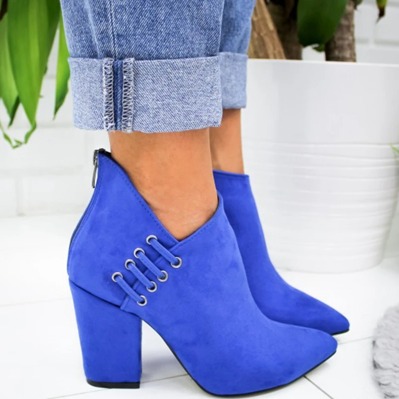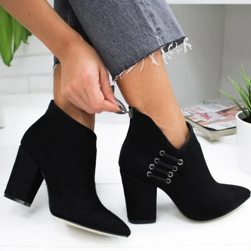 Fashion Women Shoes Ankle Boots Short Boots High-heel Fashion Pointed Europe Shoes Woman Plus Size 35-43