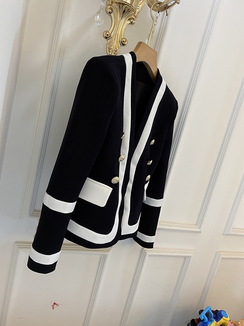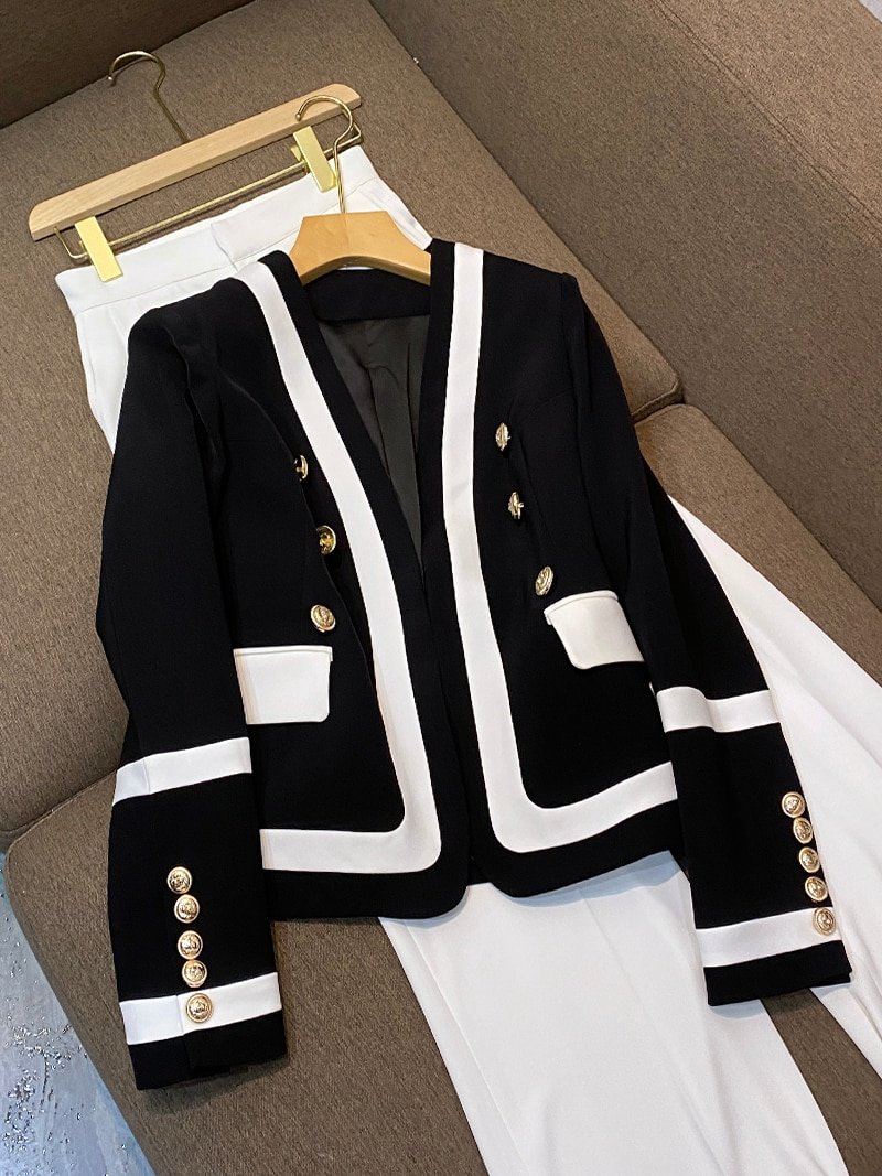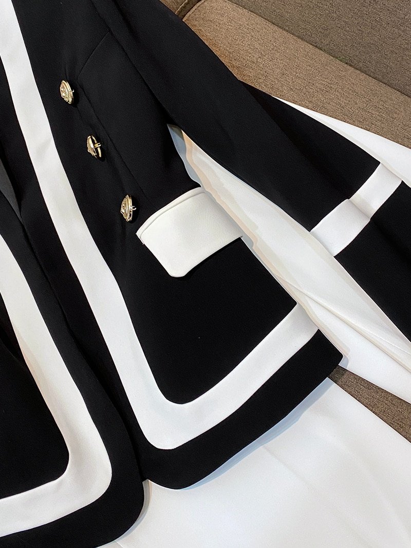 Fashionable Handsome Jacket metal Double Breasted Black And White Contrast Color Fashion Slim High Quality Suit