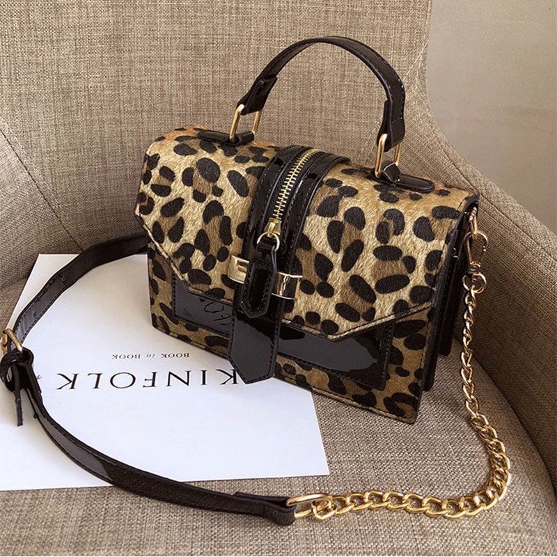 Female Handbags New Retro Fashion Leopard Print Portable Square Shoulder Bags Chain Messenger Bags Large Capacity Bags