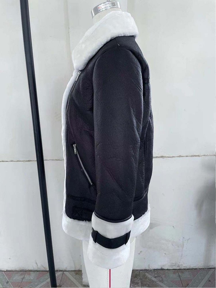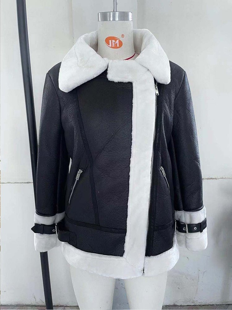 Be the first to review “Women Winter Thick Coat Pu Faux Soft Leather Black White Sheepskin Fur Jacket Female Aviator Casual Feminino Outwear”