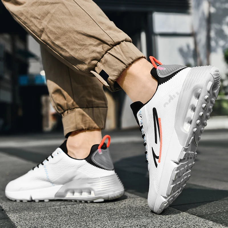 Four Seasons New Men’s Air Cushion Sports Running Shoes Fashion Comfortable Breathable White Size 39-46