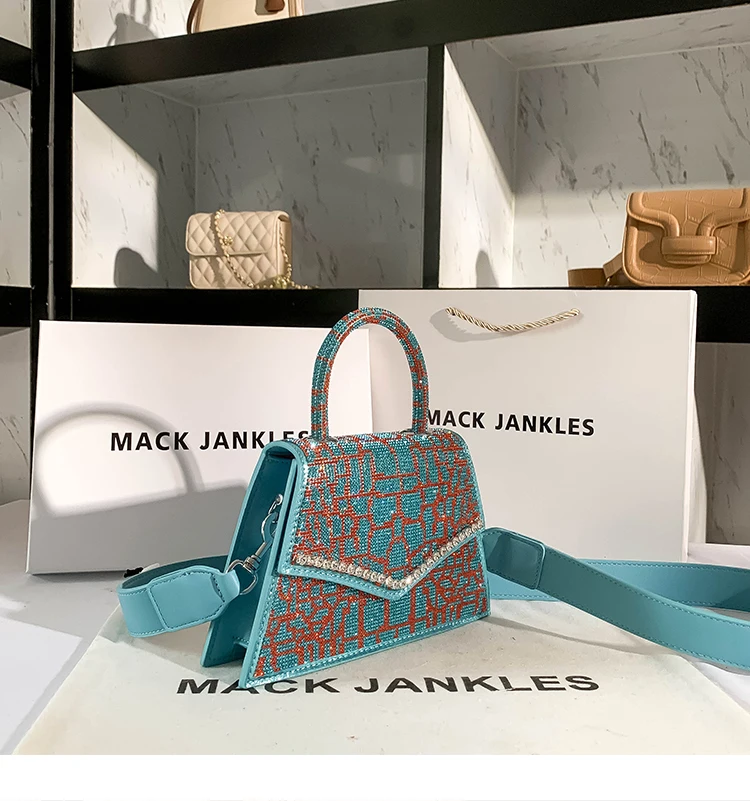 Full Rhinestone Diamond Square Bag Colored Blue Shiny Bling Evening Bag Lady Clutch Purse Shoulder Messenger Bag Women’s Handbag
